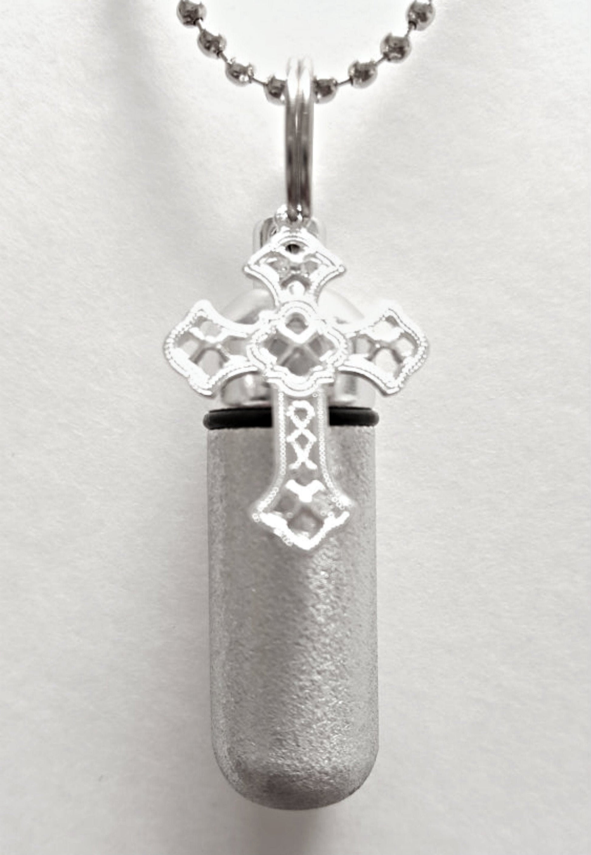 Brushed Silver Cremation Urn Necklace Keepsake with Filigree Cross, Urn Necklace, Memorial Keepsake, Child Urn, Baby Urn, Personalized Urn
