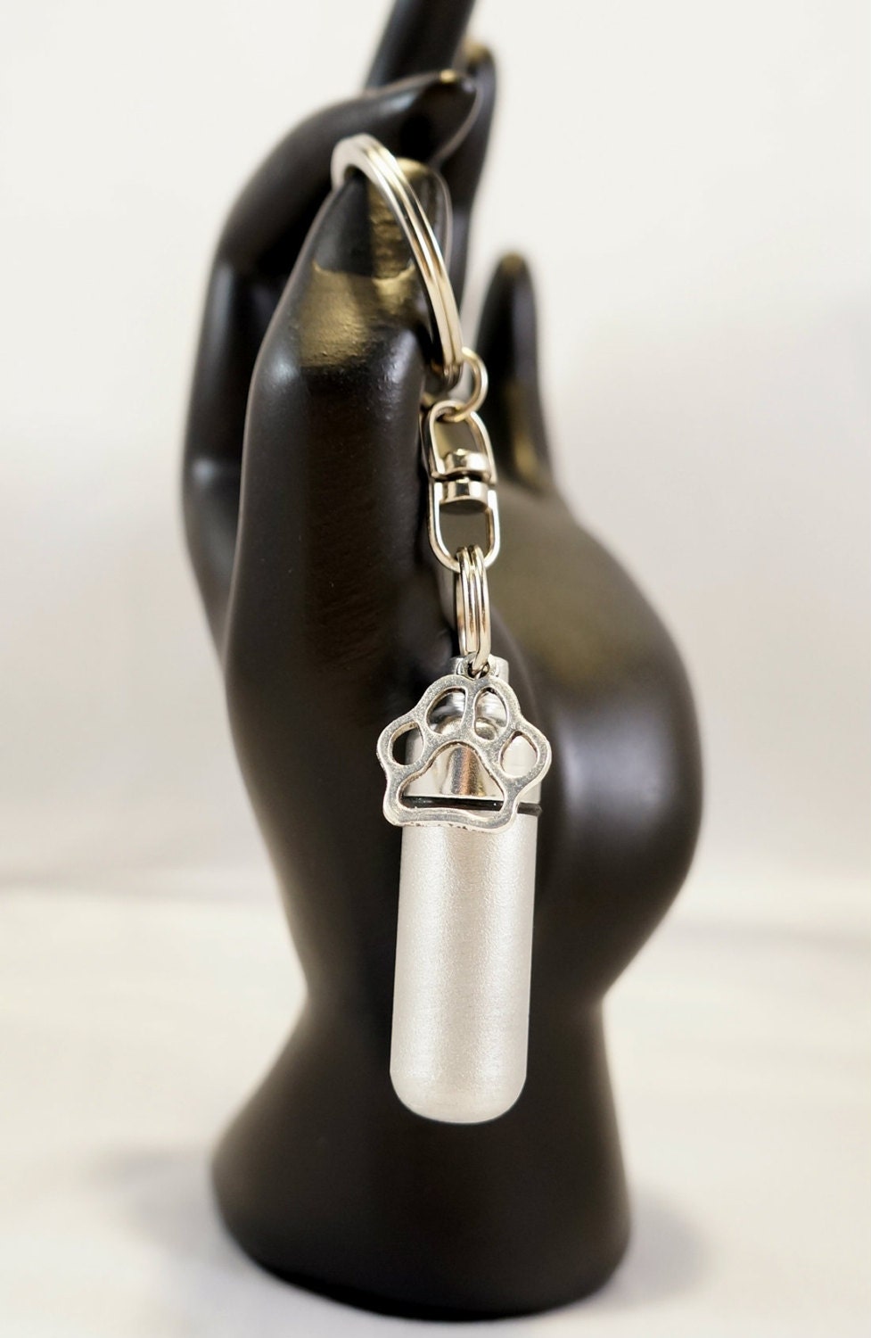Brushed Silver Cremation Urn with PET PAW on Stainless Steel Swivel Keyring, Pet Urn, Pet Loss, Dog Urn, Mourning Keepsake, Personalized Urn