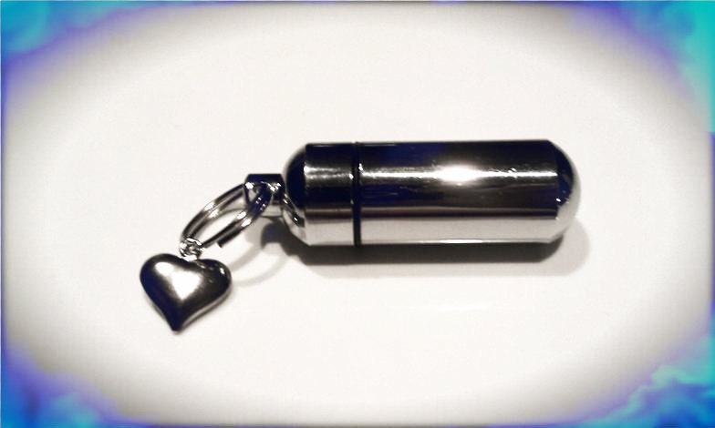Sturdy, discreet, and secure, this Urn is 1-3/4 inches tall and has a small clear container inside to hold a small amount of your loved ones ashes. Keep them close to you always. It is made of aircraft grade anodized aluminum, and will virtually last forever. The urn unscrews to reveal the storage chamber. Inside there is a clear container to keep the ashes safe and dry. A rubber gasket on the screw-on cap provides a waterproof seal. These urns are strong and lightweight enough to carry every day and fits nicely on a keyring or a necklace.