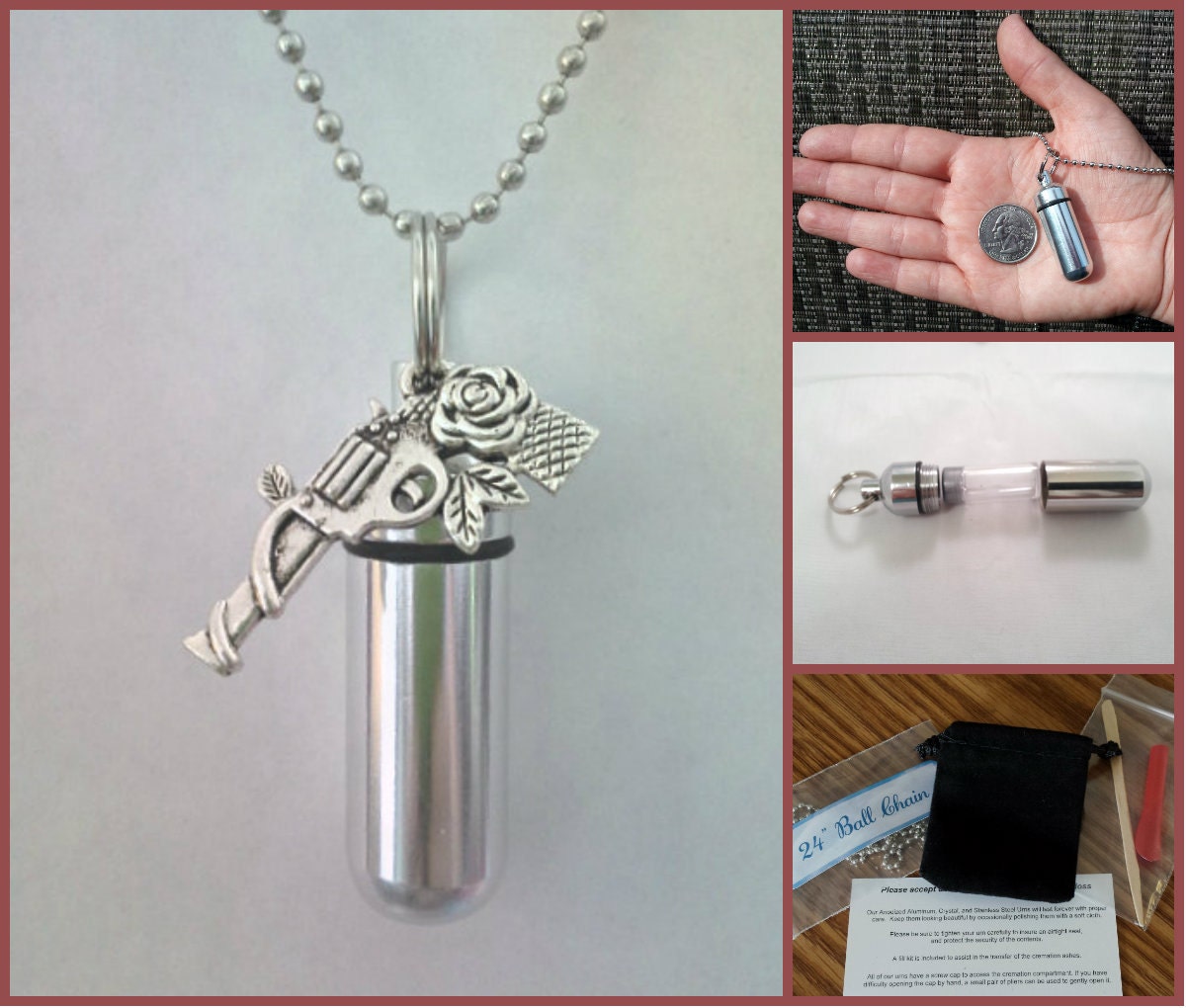 COMPLETE SET - Cremation Urn on 24" Necklace - with Rose Gun - Hand Assembled....w/Velvet Pouch and Fill Kit