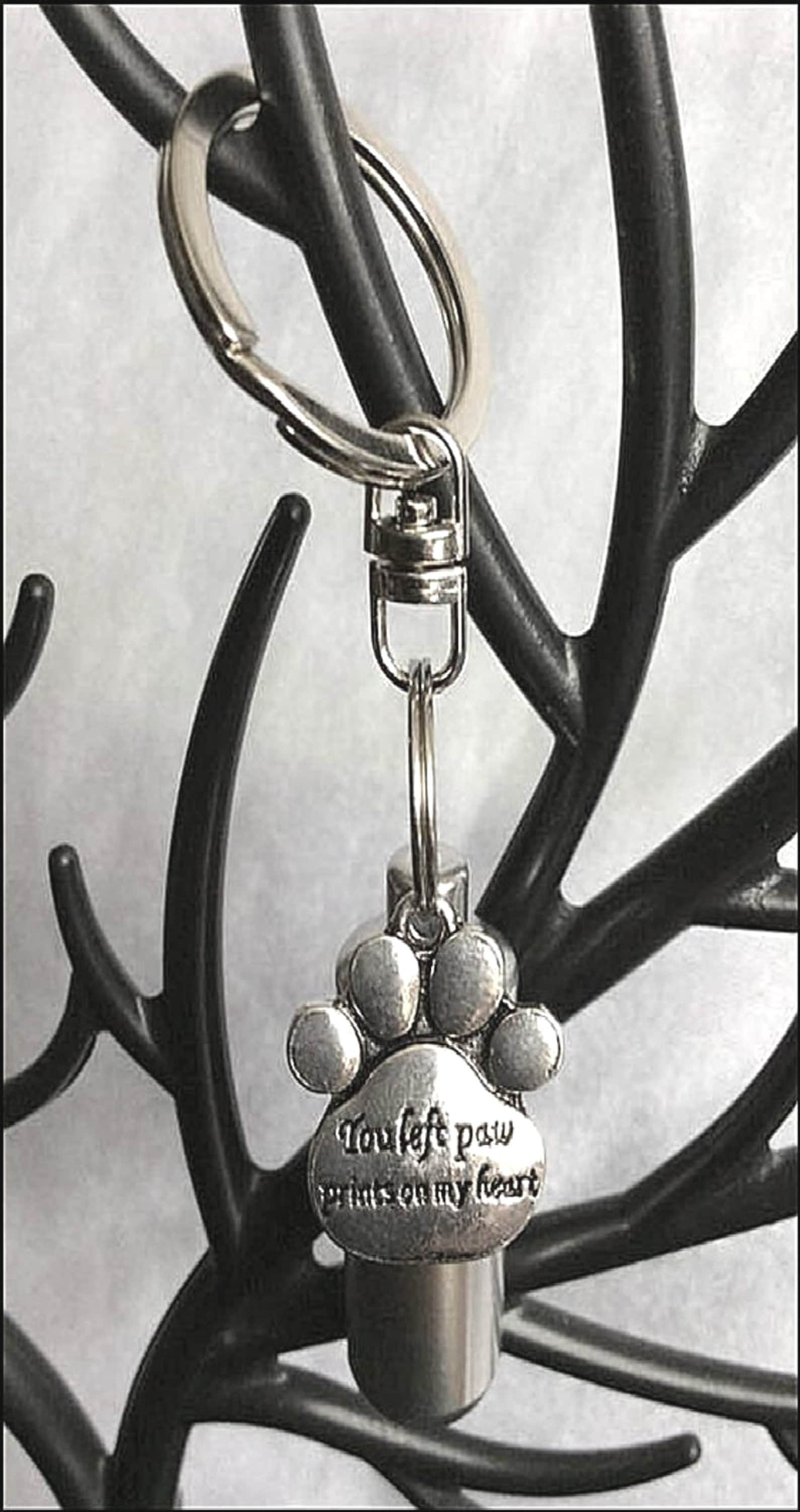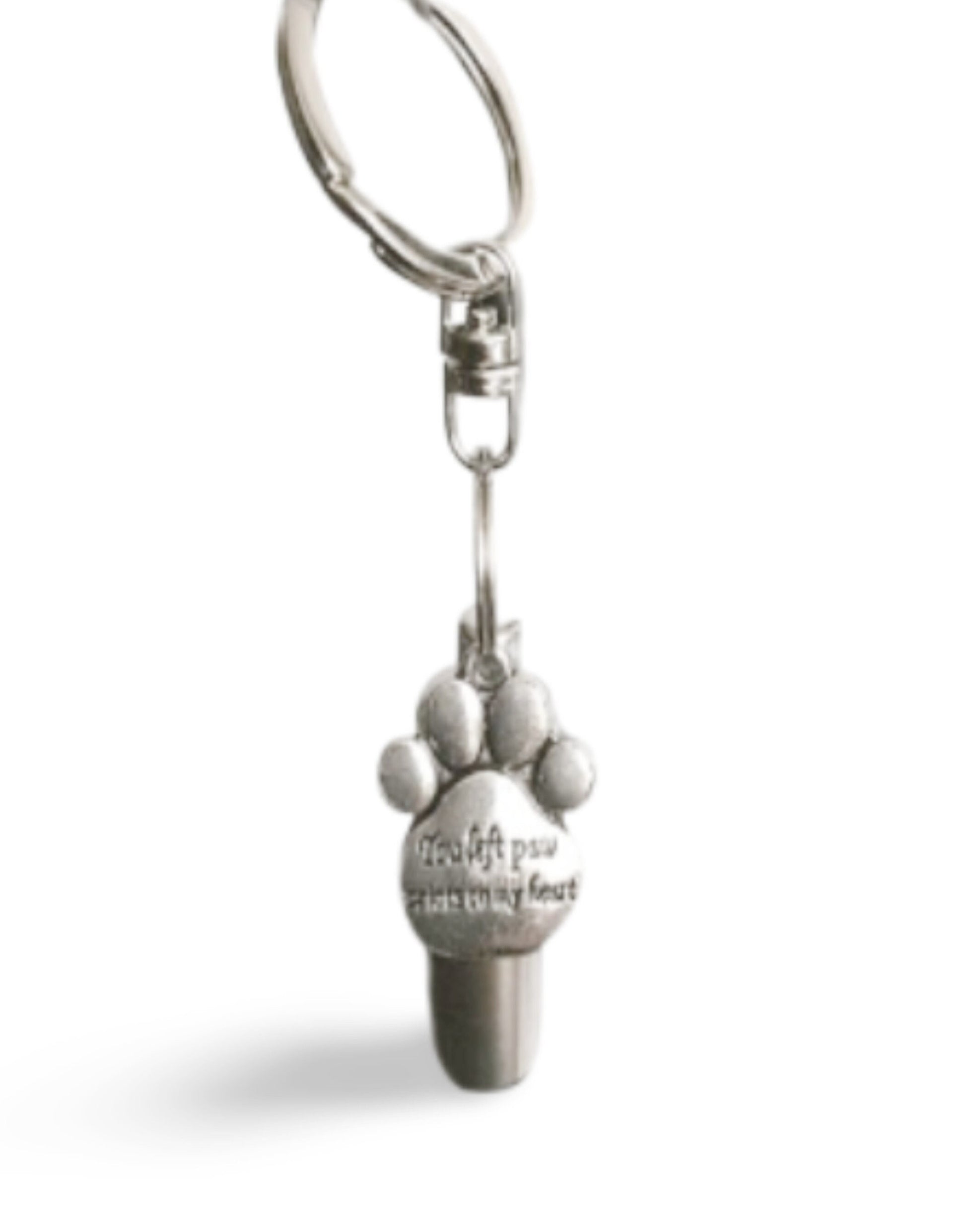 CREMATION URN Keepsake "You left paw prints on my heart" on Stainless Steel Swivel Keyring - Dog Urn, Puppy Urn, Memorial Urn, Ashes Urn