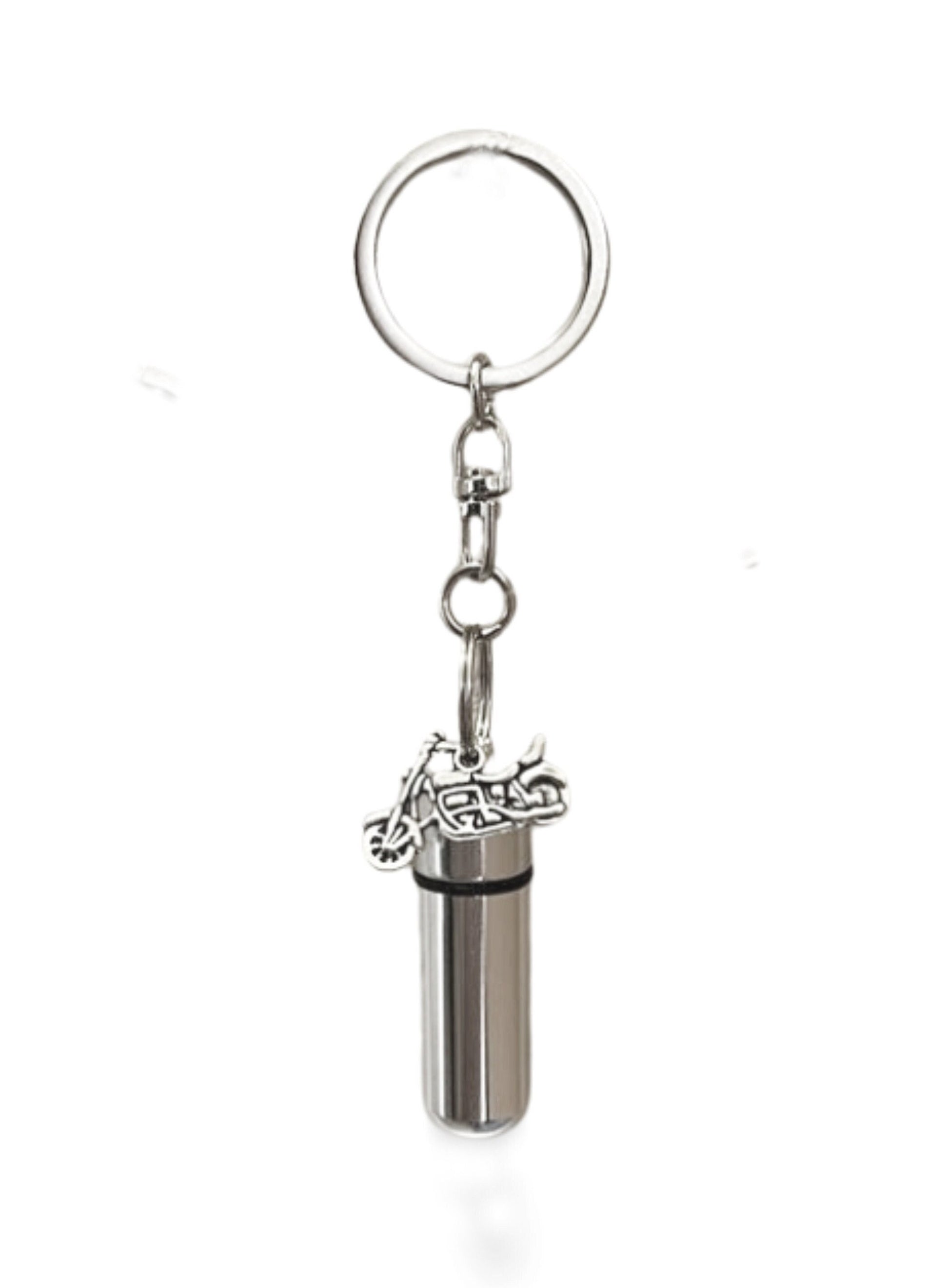 Custom Engravable MOTORCYCLE CREMATION URN on Swivel Stainless Steel Keychain - Memorial Jewelry, Urn Keepsake, Child Urn, Personalized Gift