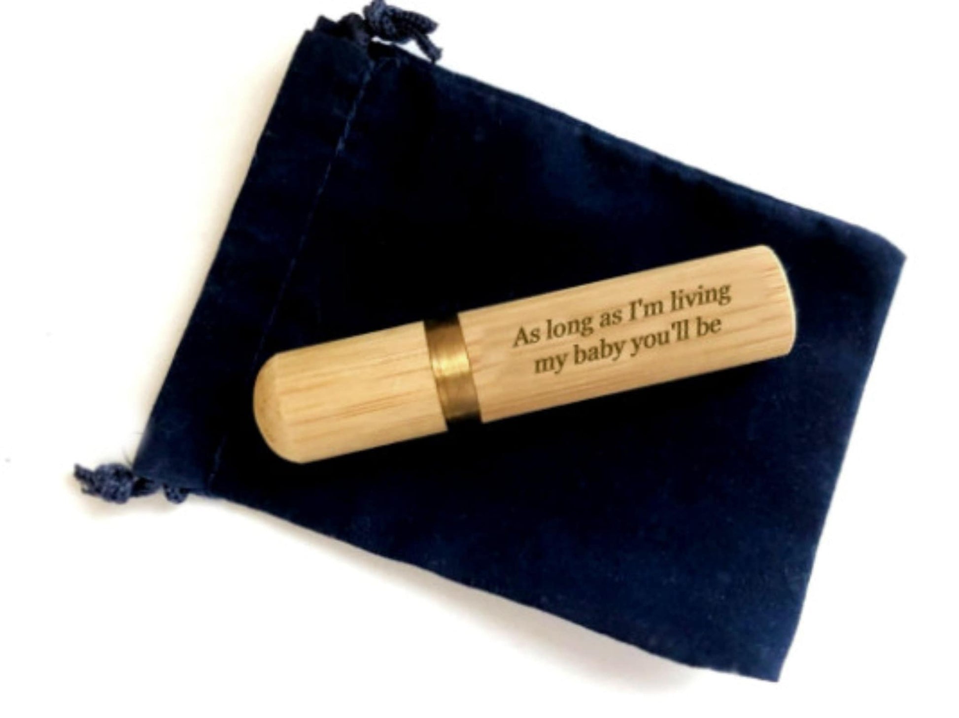 Natural Sandalwood Personal Laser ENGRAVED "As long as I'm living my baby you'll be" Scattering Tube / Cremation Urn - Fits in Pocket/Purse, Perfect for Travel, TSA Compliant, Very Secure. Comes in Black Velvet Pouch.