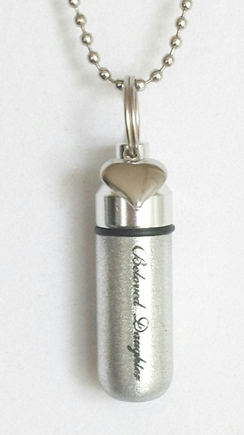 Engraved "Beloved Daughter" (with Puffed Heart) Cremation Urn Necklace - Memorial Jewelry, Mourning Keepsake, Ashes Necklace, Engraved Urn