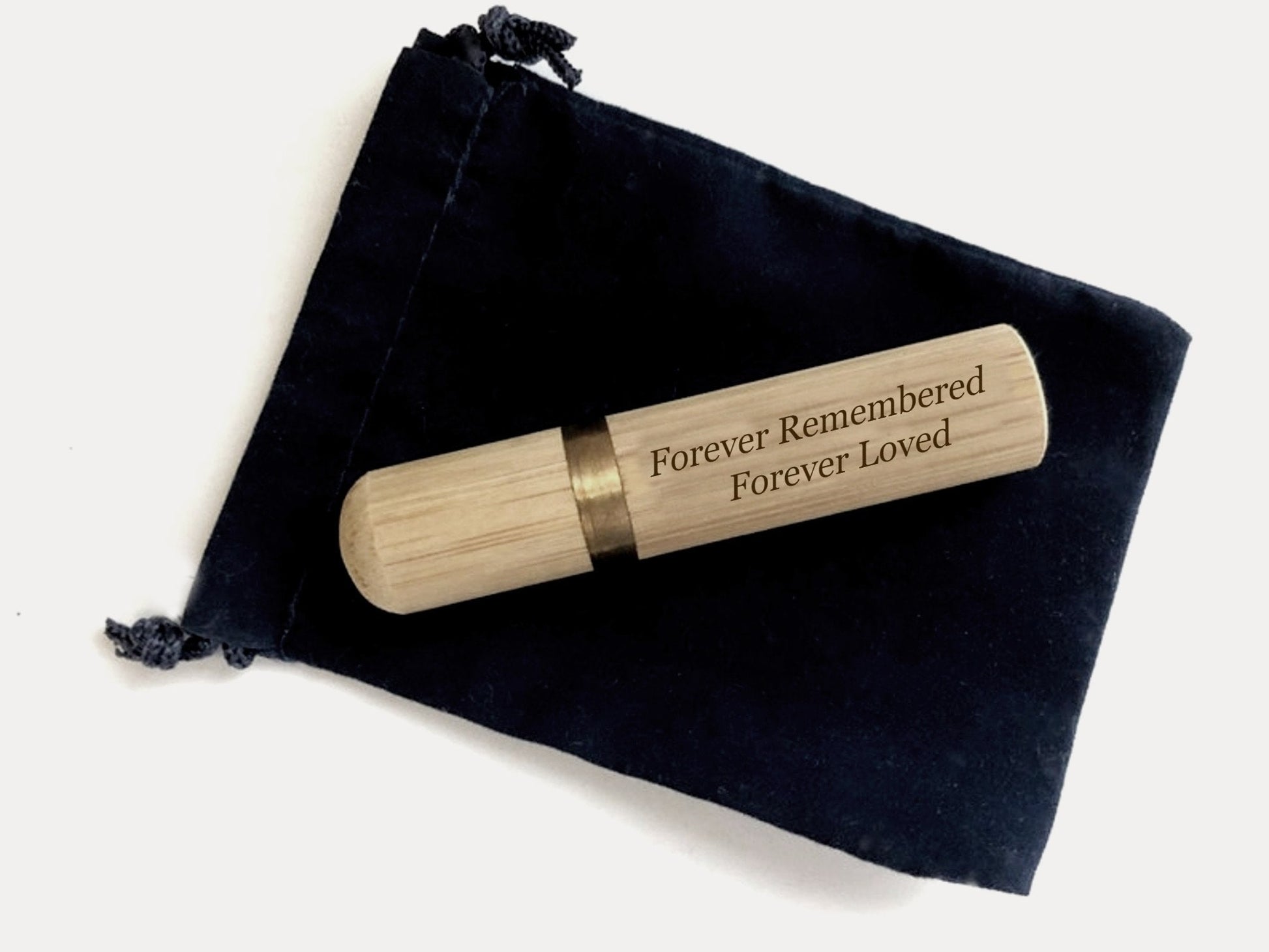 Natural Sandalwood Personal Laser ENGRAVED "Forever Remembered Forever Loved" Scattering Tube / Cremation Urn - Fits in Pocket/Purse, Perfect for Travel, TSA Compliant, Very Secure. Comes in Black Velvet Pouch.