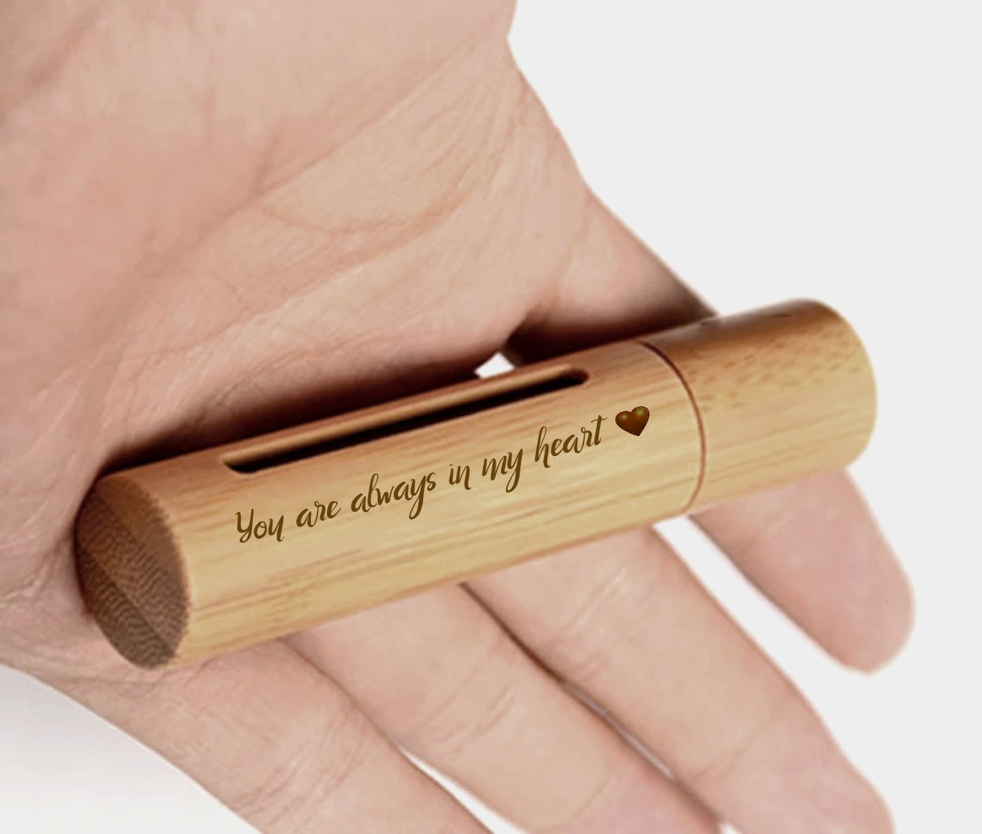 ENGRAVED "You are always in my heart" Sandalwood Cremation Urn / Scattering Tube w/Window - Fits Pocket or Purse, TSA Compliant for Travel
