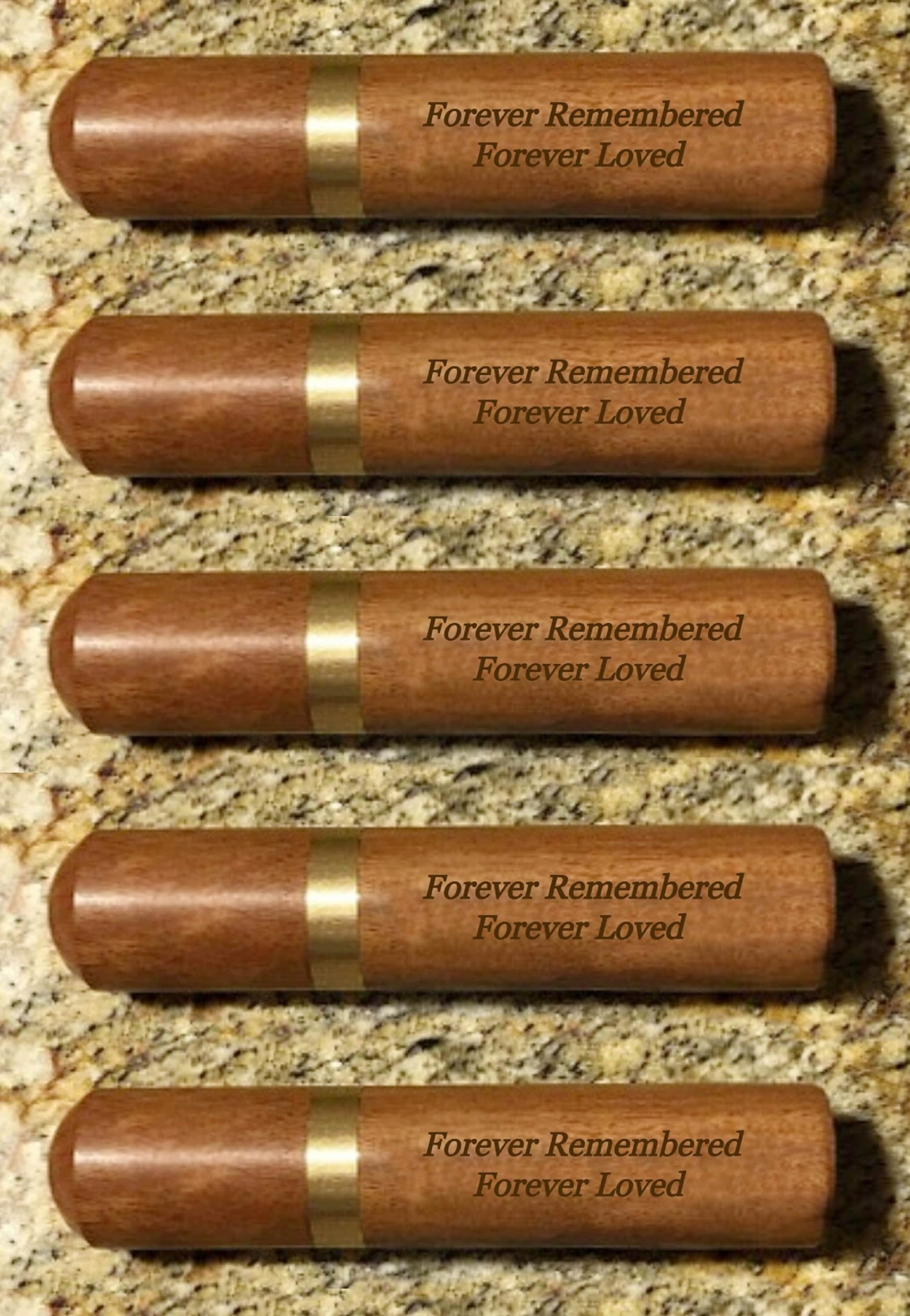 FIVE ENGRAVED "Forever Remembered Forever Loved" Rosewood Cremation Urn / Scattering Tubes, Fits in Pocket/Purse, TSA Compliant, Very Secure
