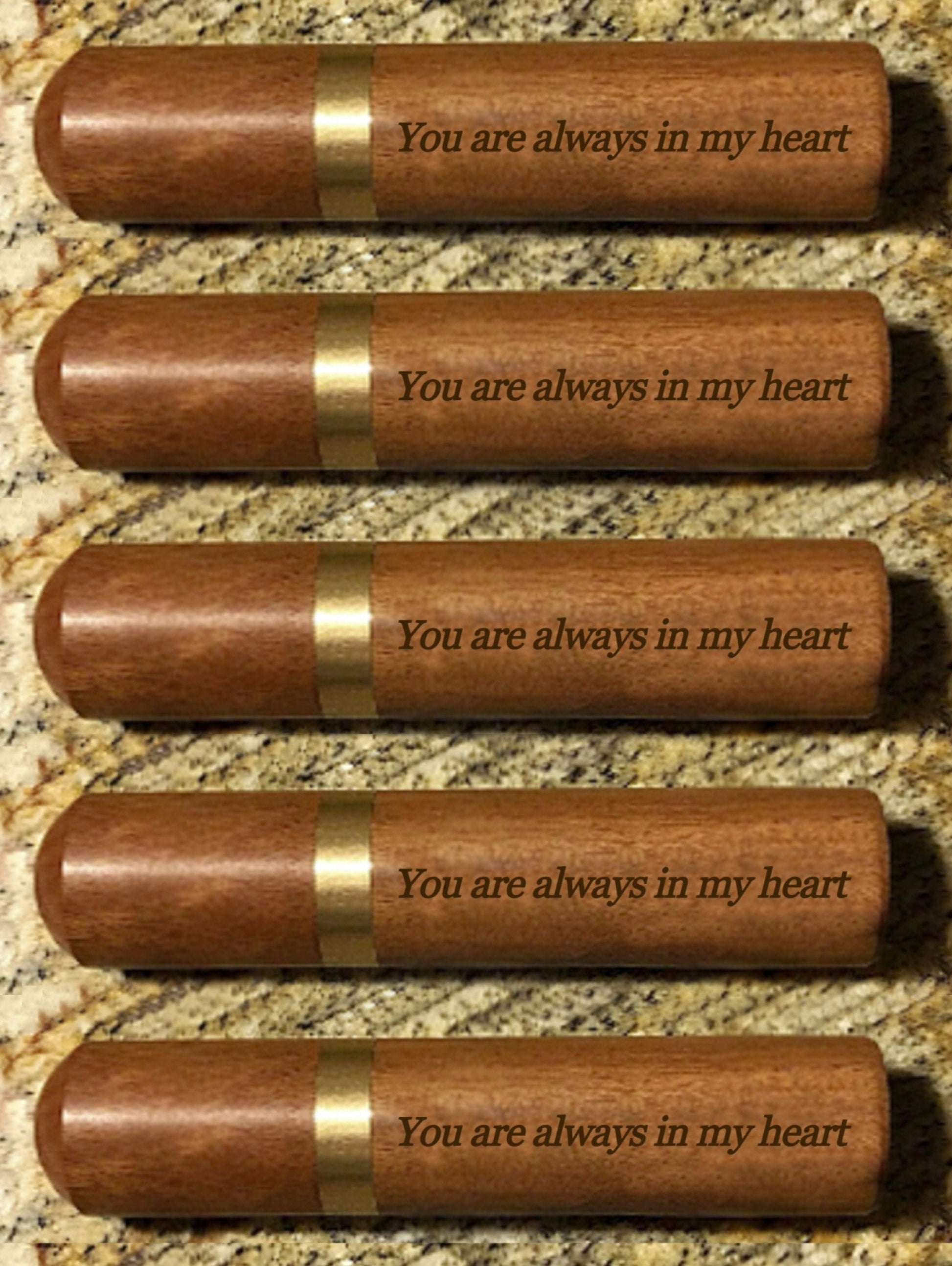 Five ENGRAVED "You are always in my heart" Rosewood Cremation Urns / Scattering Tubes - Fits in Pocket/Purse, TSA Compliant, Very Secure