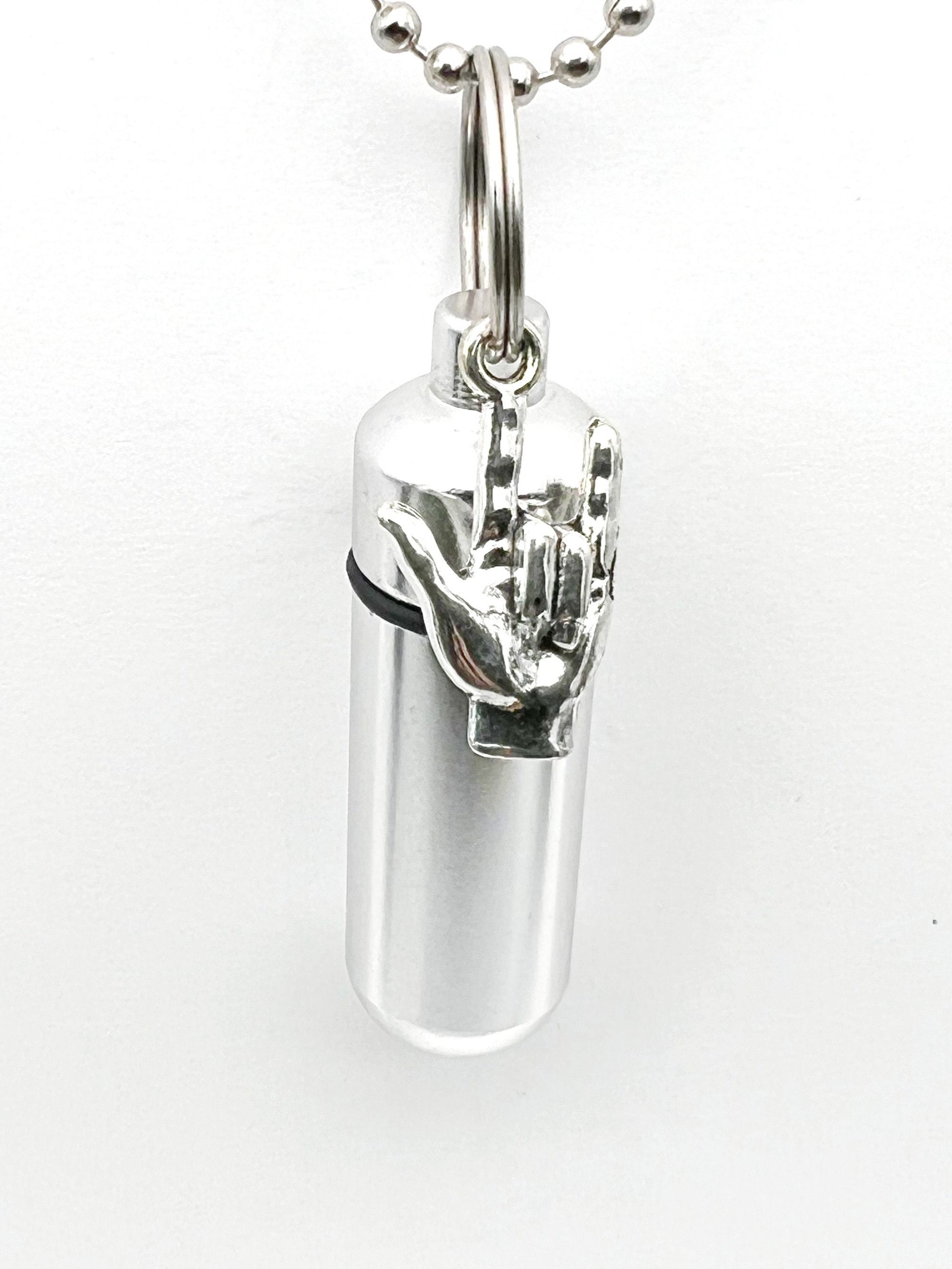 I LOVE YOU (Sign Language) Cremation Urns on Steel Ball Chain Necklace, Mourning Jewelry, Ashes Keepsake, Child Urn, Pet Urn, Personalized