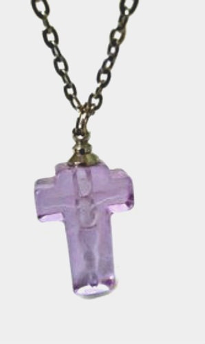 Violet Crystal Mourning Cross with image of Jesus CREMATION URN on 24" Silver Curb-link Necklace