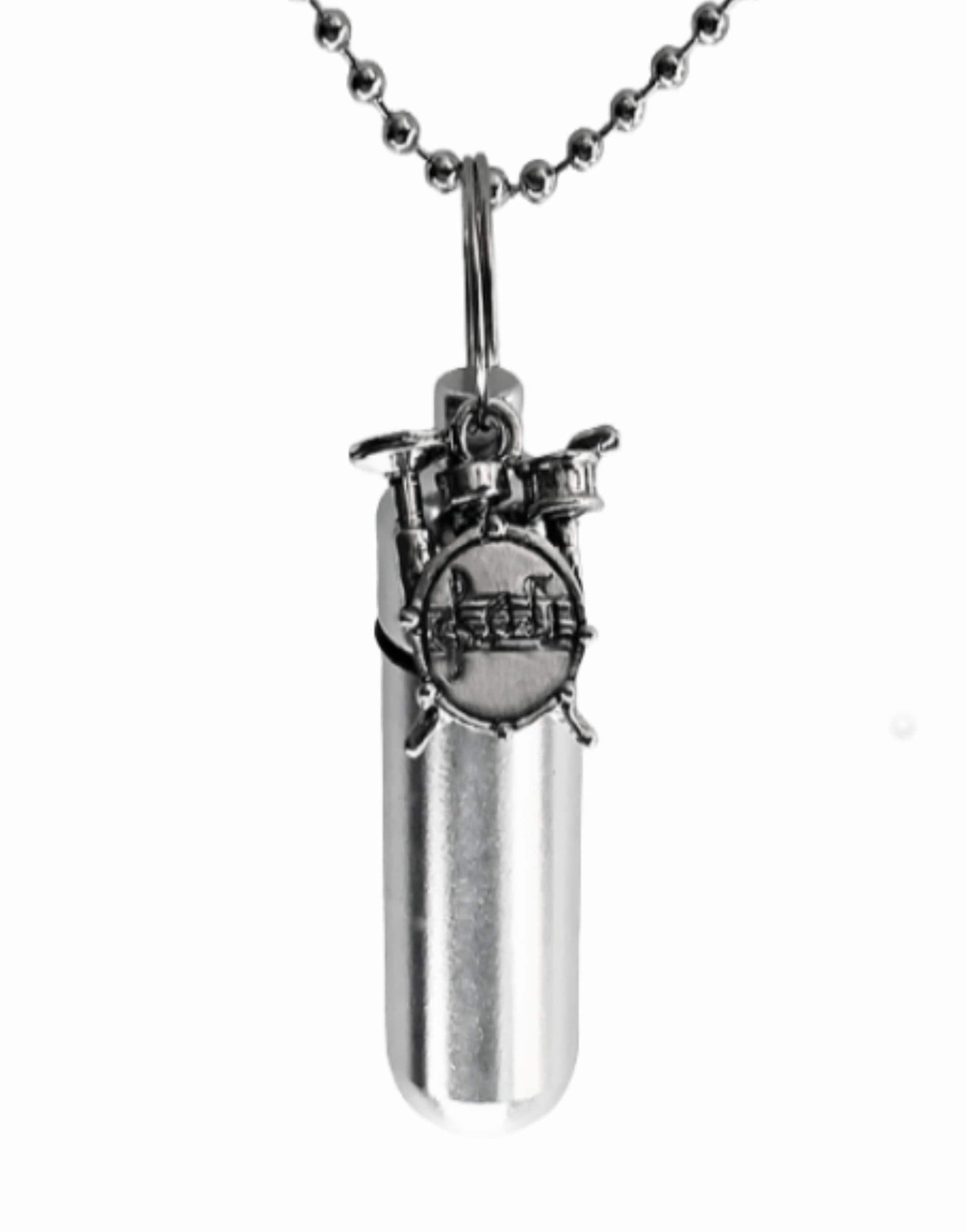 Musical Drums CREMATION URN Necklace Keepsake with Silver Drum Set - Urn Jewelry, Ashes Necklace, Keepsake Urn, Pet Urn, Personalized Urn