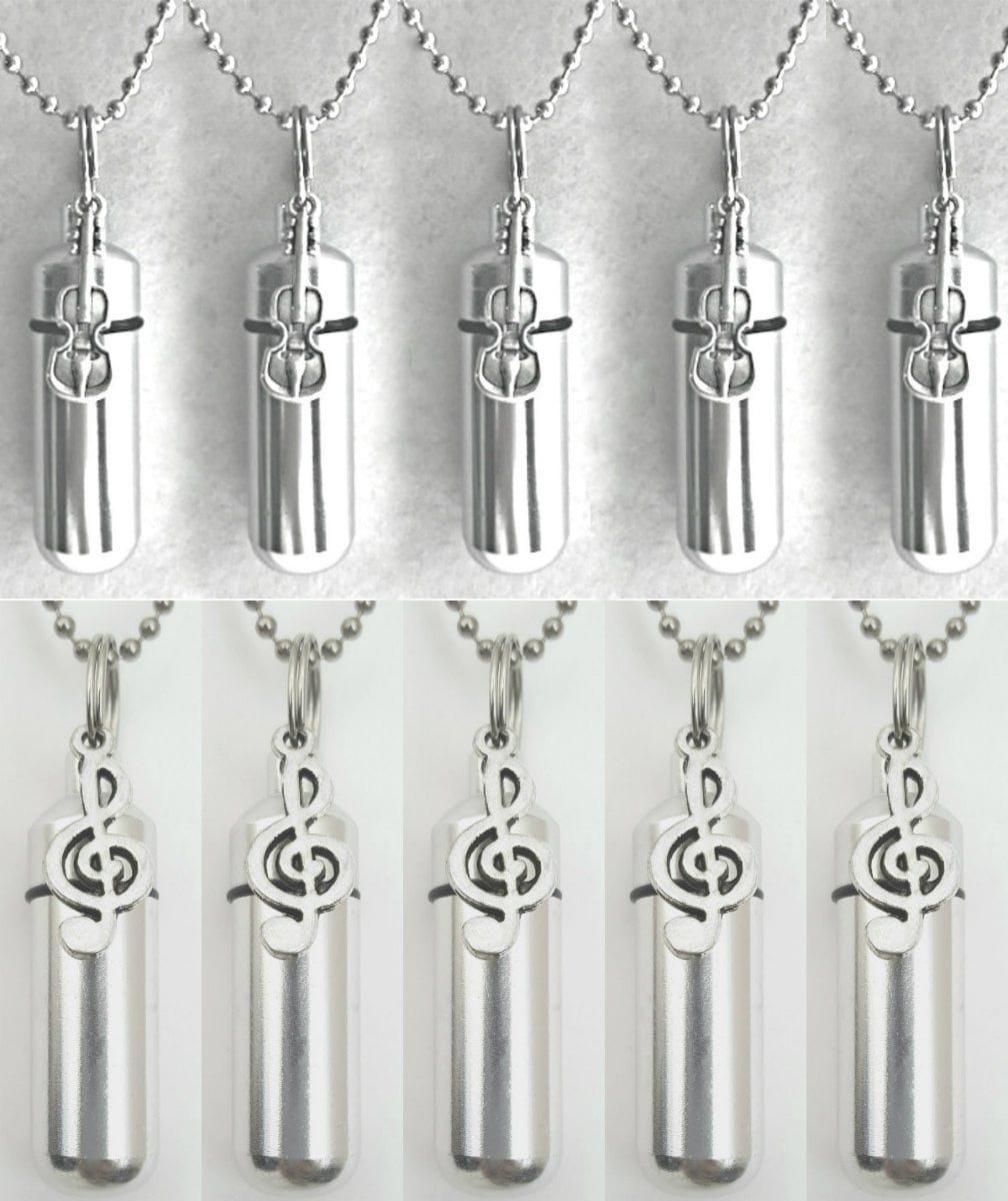 Musical Set of TEN CREMATION URNS with (5) Treble Clefs and (5) Violins - Ashes Necklace, Memorial Jewelry, Mourning Jewelry, Personalized