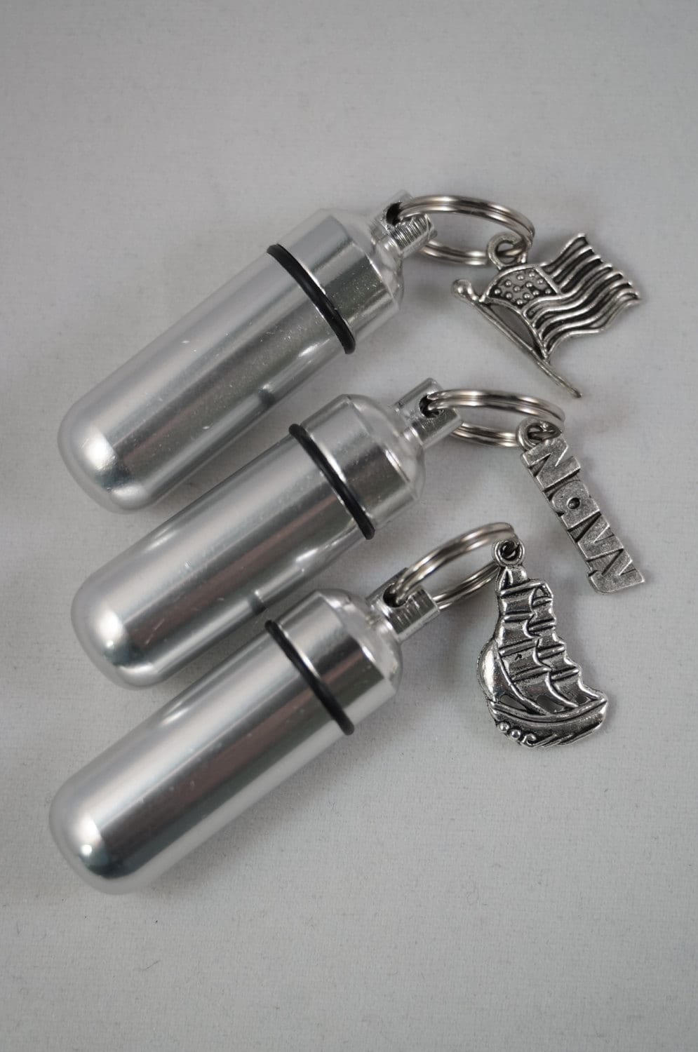 Sturdy, discreet, and secure, this Urn is 1-3/4 inches tall and has a small clear container inside to hold a small amount of your loved ones ashes. Keep them close to you always. Urn is made of aircraft-grade anodized aluminum and will last forever. The urn unscrews to reveal the storage chamber. Inside there is a clear container to keep the ashes safe and dry. A rubber gasket on the screw-on cap provides a waterproof seal. These urns are strong and lightweight enough to carry every day and fits nicely on a keyring or a necklace.