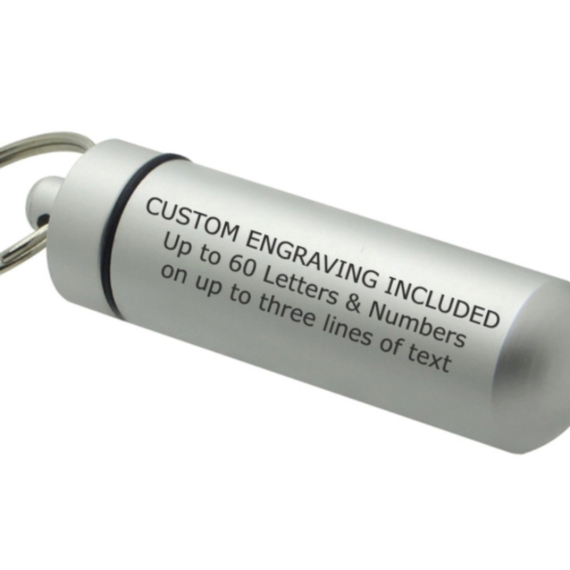 Sturdy, discreet, and secure, this Urn is 1-3/4 inches tall and has a small clear container inside to hold a small amount of your loved ones ashes. Keep them close to you always. It is made of aircraft grade anodized aluminum, and will virtually last forever. The urn unscrews to reveal the storage chamber. Inside there is a clear container to keep the ashes safe and dry. A rubber gasket on the screw-on cap provides a waterproof seal. These urns are strong and lightweight enough to carry every day and fits nicely on a keyring or a necklace.