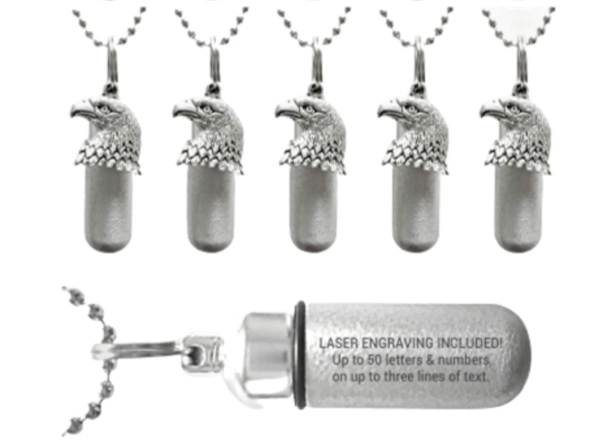 Patriotic Set of 5 Brushed Silver CUSTOM ENGRAVED Cremation Urn Necklaces with Bald Eagles - Urn Jewelry, Ashes Necklace, Pet Urn, Keepsake