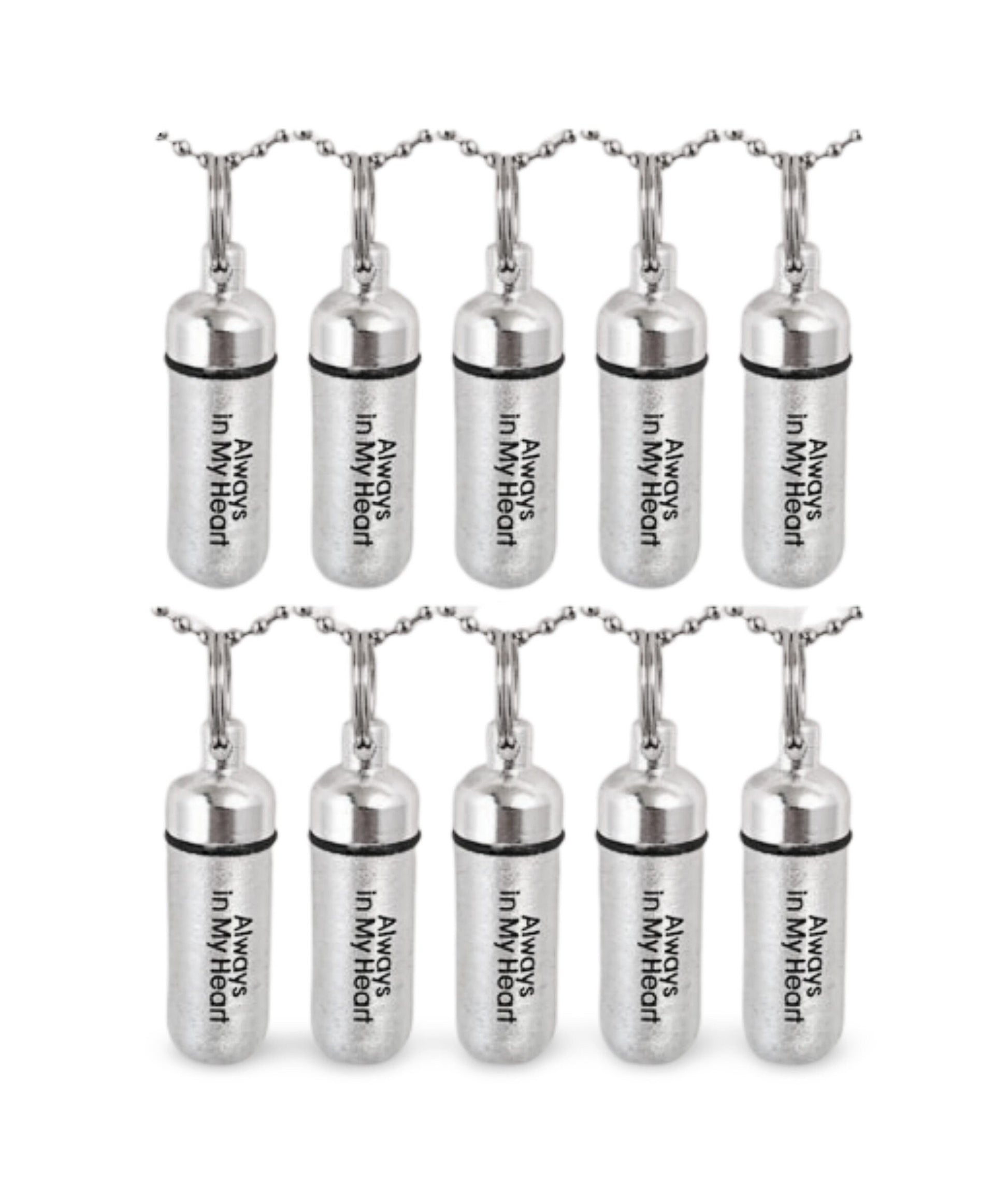 Set of 10 ENGRAVED Brushed Silver CREMATION URN Necklaces "Always In My Heart" - Urn Keepsake, Ashes Necklace, Mourning Jewelry, Pet Ashes