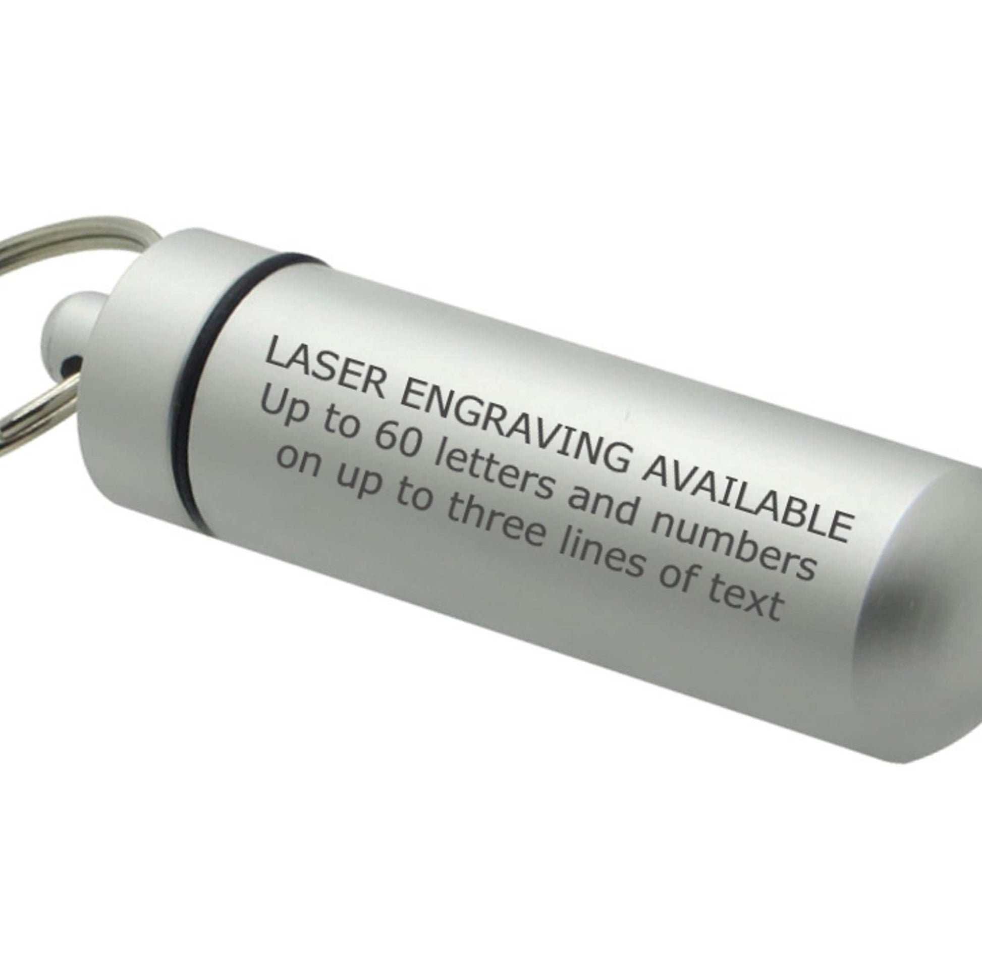 Sturdy, discreet, and secure, this Urn is 1-3/4 inches tall and has a small clear container inside to hold a small amount of your loved ones ashes. Keep them close to you always. Urn is made of aircraft-grade anodized aluminum and will last forever. The urn unscrews to reveal the storage chamber. Inside there is a clear container to keep the ashes safe and dry. A rubber gasket on the screw-on cap provides a waterproof seal. These urns are strong and lightweight enough to carry every day and fits nicely on a keyring or a necklace.