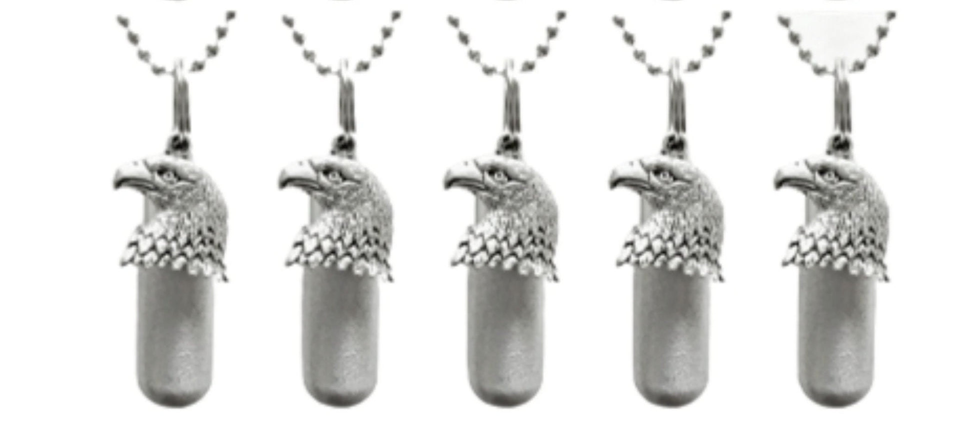Set of 5 Brushed Silver CREMATION URN Necklaces with Bald Eagle & Engraved US Flag, Memorial Jewelry, Urn Keepsake, Ashes Jewelry, Mourning