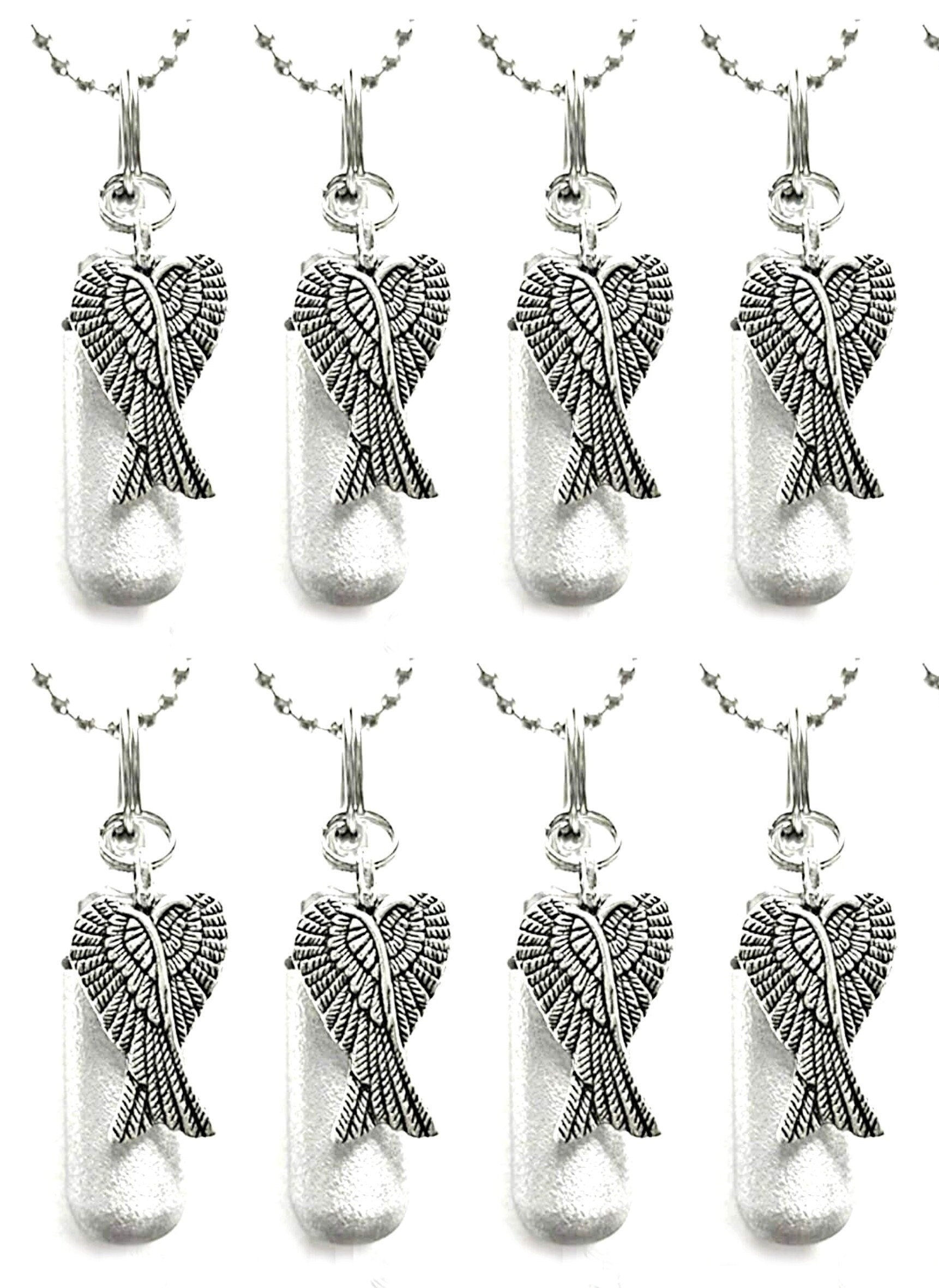 Set of EIGHT Brushed Silver Cremation Urn Necklaces with Angel Wings, Ashes Jewelry, Memorial Jewelry, Urn For Human Ashes, Personalized Urn