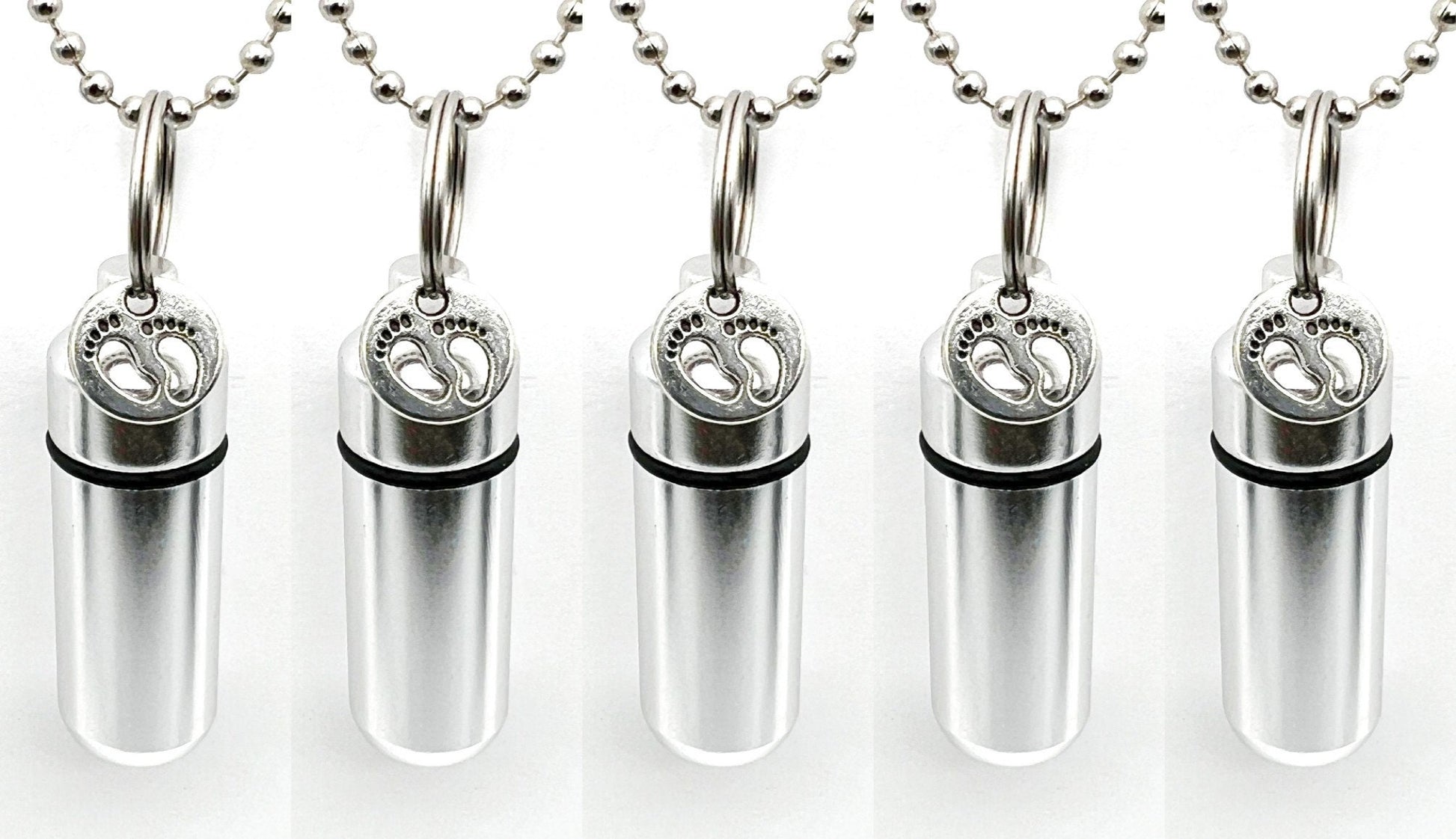 Set of FIVE "Baby Footprints" Cremation Urn Necklaces - Remembrance Keepsake, Memorial Jewelry, Child Loss, Baby Loss, Urn For Human Ashes