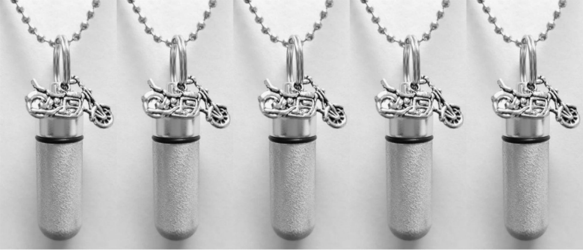 Set of Five Brushed Silver MOTORCYCLE CREMATION URN Necklaces - Urn Necklace, Ashes Keepsake. Memorial Jewelry, Urn For Human Ashes, Pet Urn