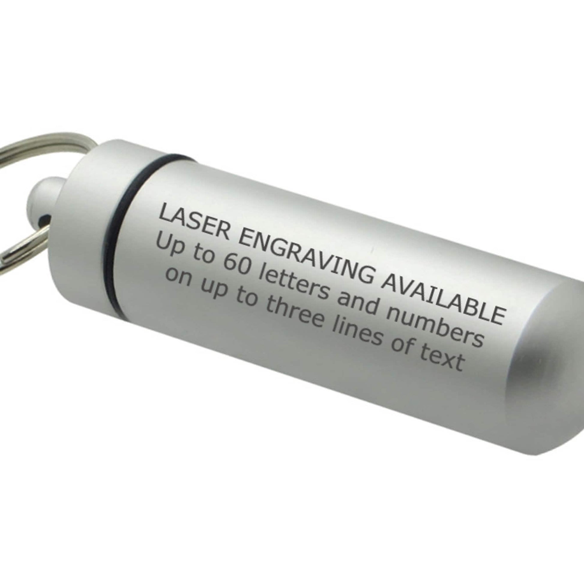 Sturdy, discreet, and secure, this Urn is 1-3/4 inches tall and has a small clear container inside to hold a small amount of your loved ones ashes. Keep them close to you always. It is made of aircraft grade anodized aluminum, and will virtually last forever. The urn unscrews to reveal the storage chamber. Inside there is a clear container to keep the ashes safe and dry. A rubber gasket on the screw-on cap provides a waterproof seal. These urns are strong and lightweight enough to carry every day and fits nicely on a keyring or a necklace.