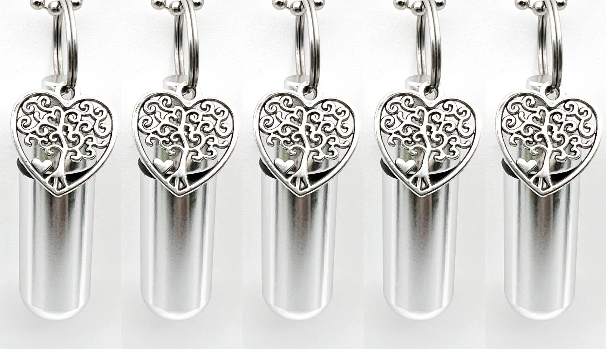 Set of FIVE Cremation Urn Necklaces with "Heart Shaped Tree Of Life" - Ashes Jewelry, Mourning Keepsake, Urn Necklace, Personalized Urn