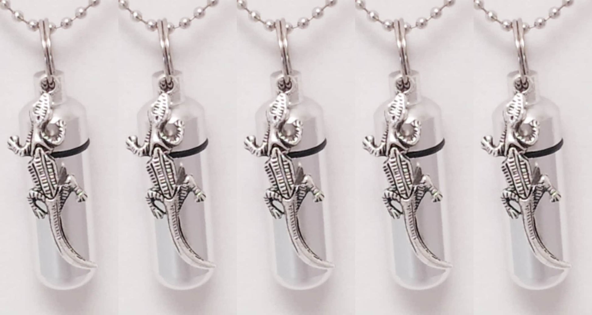 Set of Five Silver CREMATION URN Necklace Keepsakes with Alligator/Gecko - Urn Keepsake, Memorial Jewelry, Ashes Necklace, Urn for Ashes