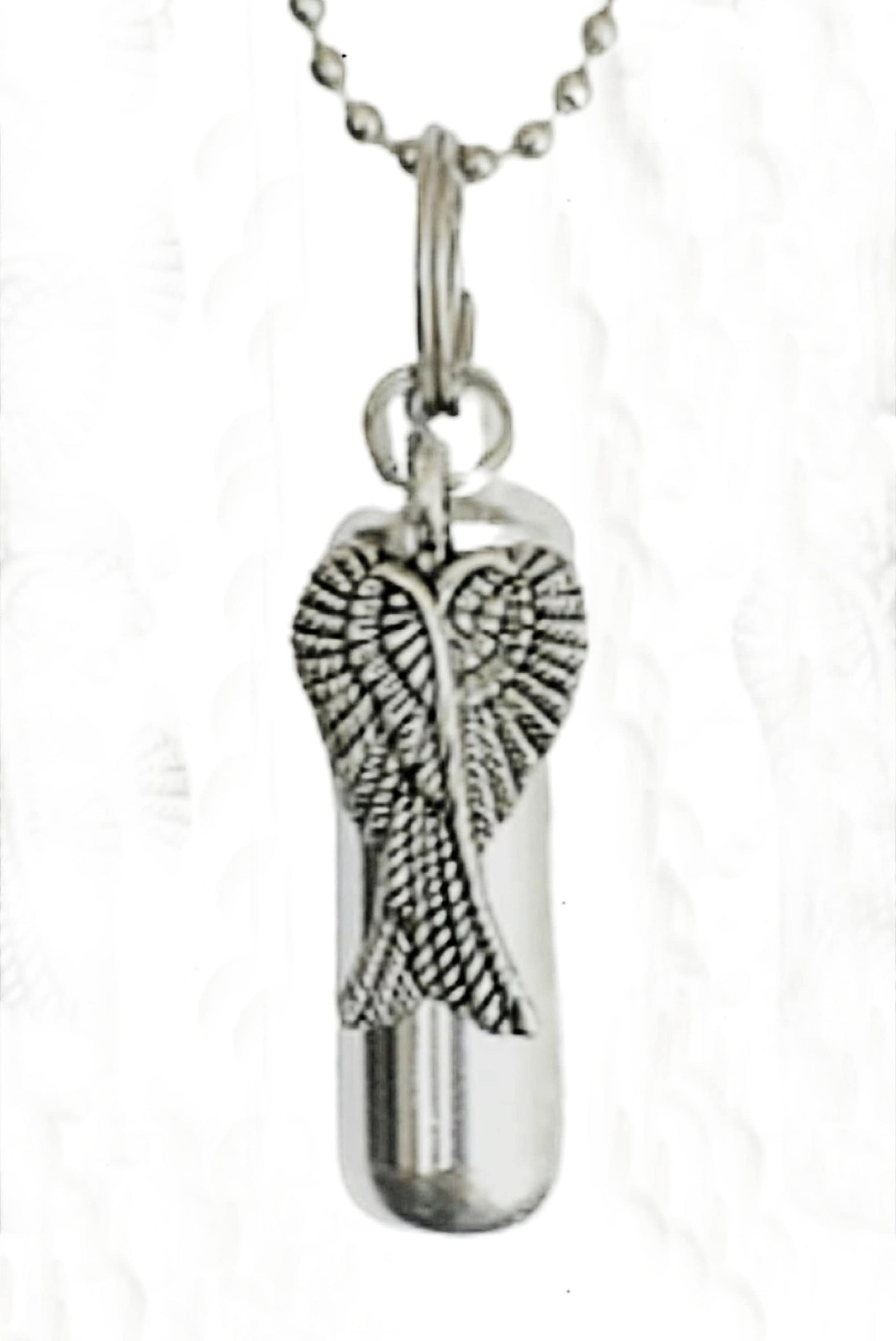 Set of FIVE Silver CREMATION URN Necklace Keepsakes with Large Angel Wings - Memorial Jewelry, Ashes Necklace, Urn Jewelry, Ashes Urn