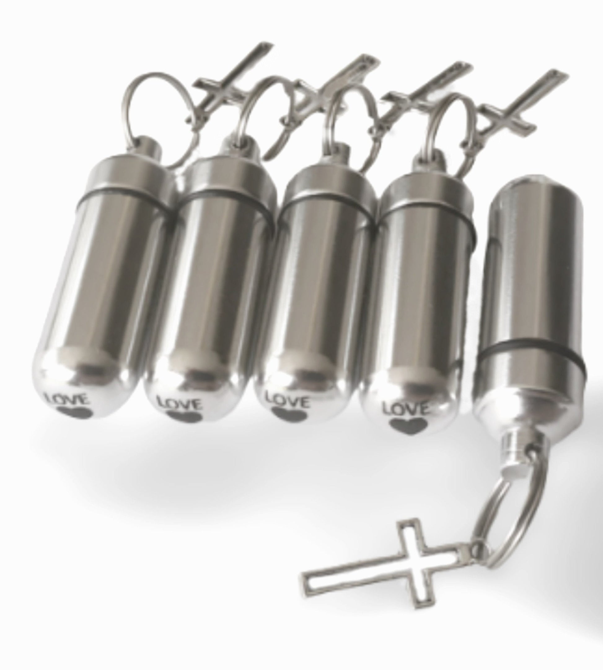 Set of FIVE Silver Hollow Cross CREMATION URN Necklaces with Laser Engraved Hearts - Ashes Jewelry, Urn Necklace, Memorial Jewelry, Pet Urn