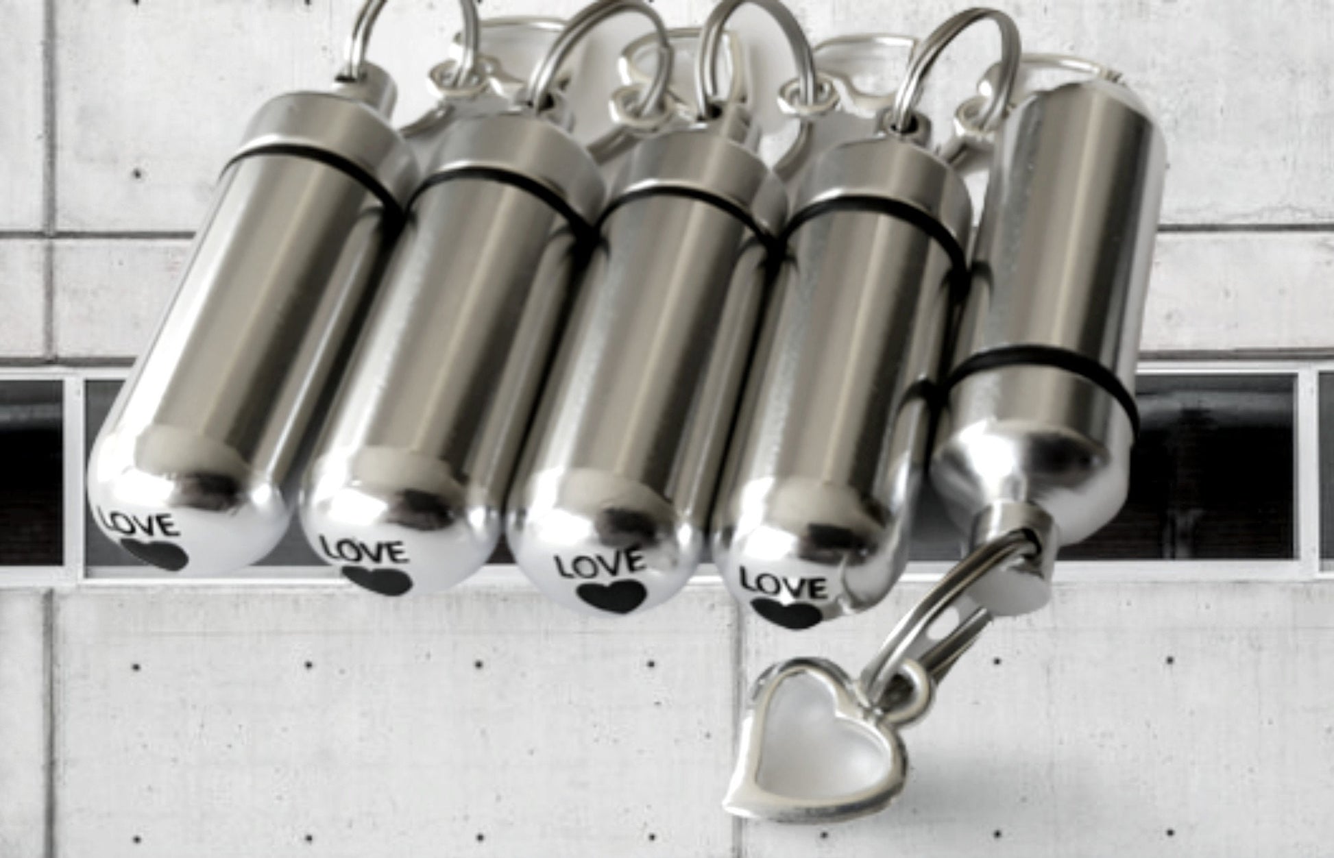 Sturdy, discreet, and secure, this Urn is 1-3/4 inches tall and has a small clear container inside to hold a small amount of your loved ones ashes. Keep them close to you always. Urn is made of aircraft-grade anodized aluminum and will last forever. The urn unscrews to reveal the storage chamber. Inside there is a clear container to keep the ashes safe and dry. A rubber gasket on the screw-on cap provides a waterproof seal. These urns are strong and lightweight enough to carry every day and fits nicely on a keyring or a necklace.