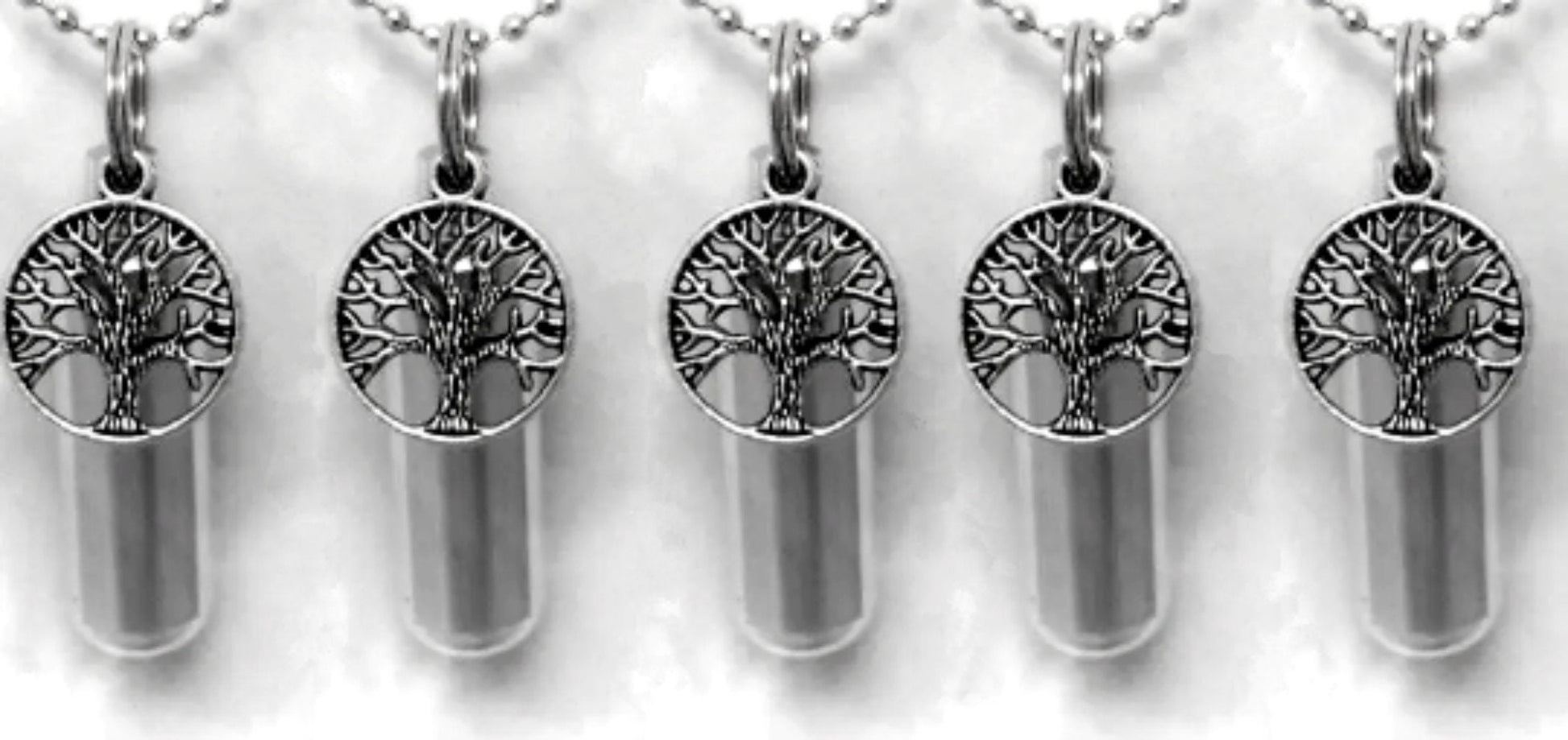 Set Of FIVE Silver Tree Of Life Cremation Urn Necklaces - Urn Keepsake, Cremation Jewelry, Urn For Ashes, Mourning Keepsake, Ashes Necklace