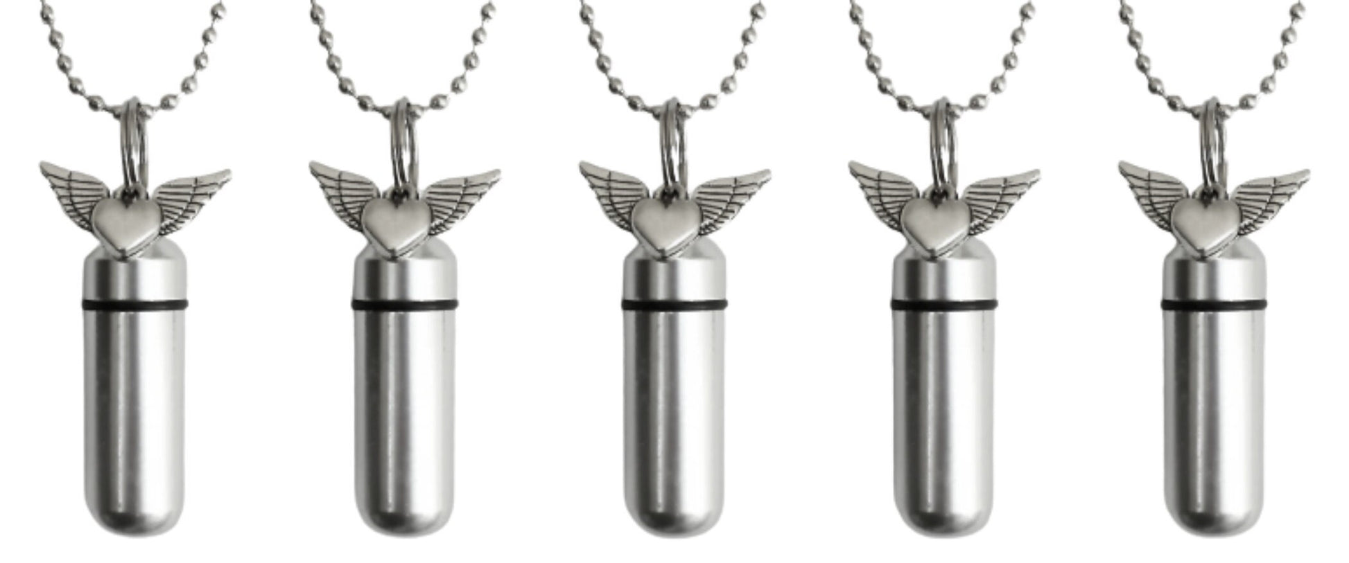 Set of FIVE Silver Winged Heart CREMATION URN Necklaces - Memorial Necklace, Urn Jewelry, Ashes Jewelry, Urn For Human Ashes, Pet Urn