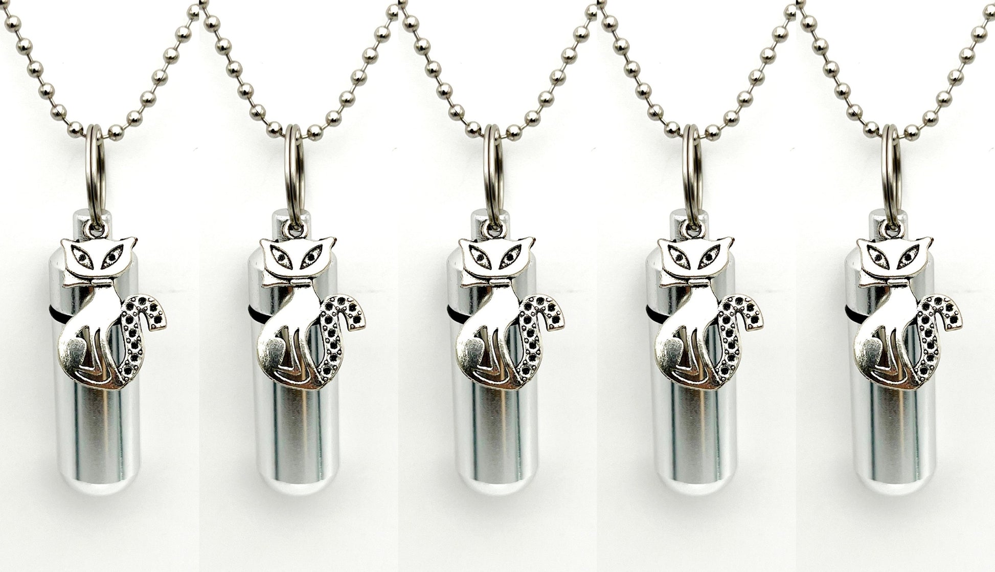 Set of FIVE "Sly Kitty" CREMATION URN Necklace Keepsakes - Pet Loss, Cat Urn, Memorial Jewelry, Urn Keepsake, Personalized Urn, Pet Urn