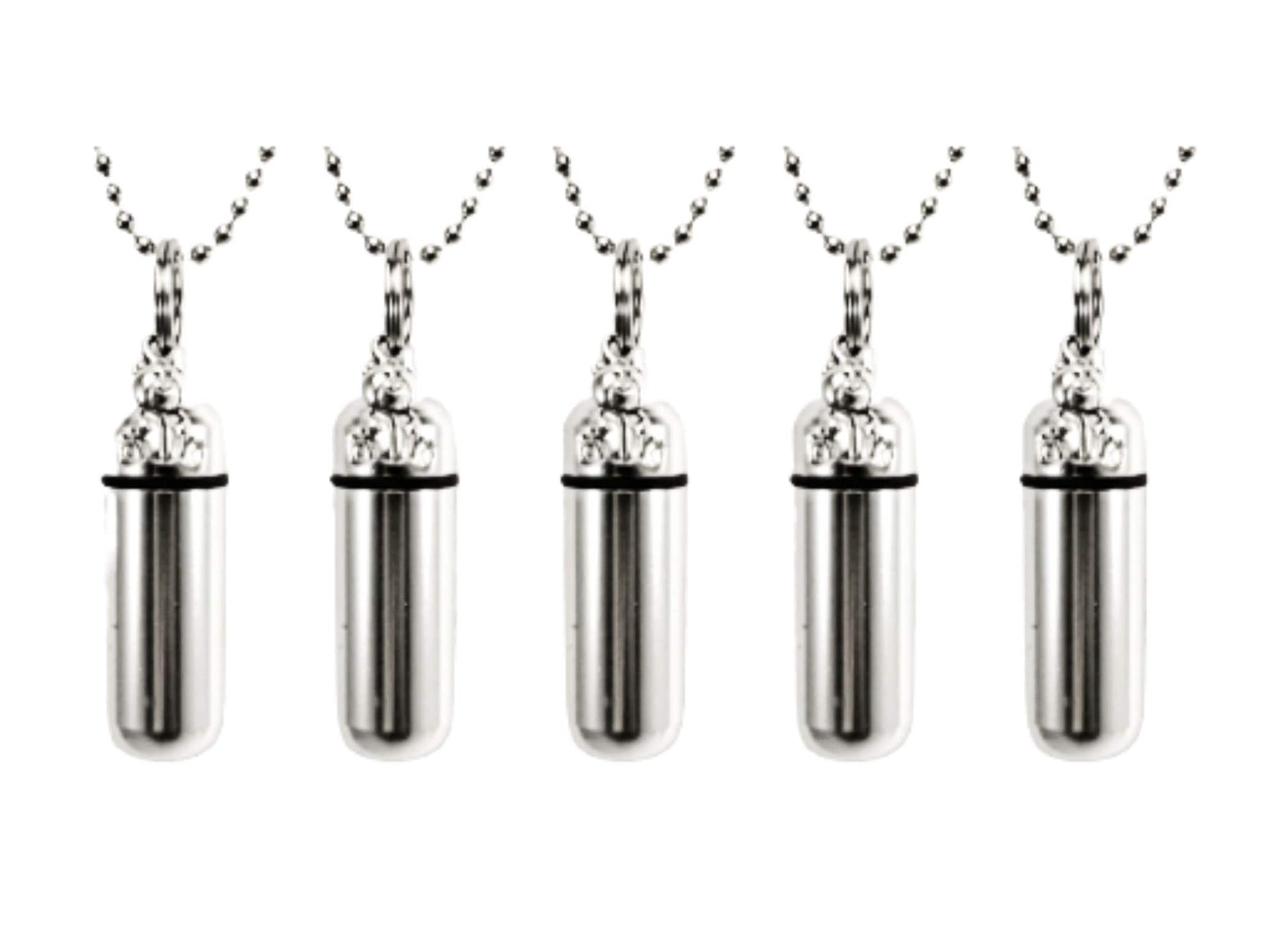 Family Set of FIVE Cremation Urn Keepsakes - Includes Five Velvet Pouches, Five 24" steel Ball-Chain Necklaces & Fill Kit