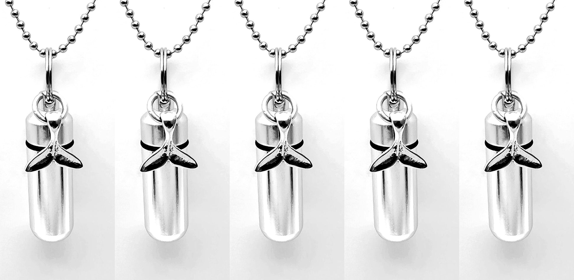 Set of Five WHALE TAIL Cremation Urns on 24" Steel Ball Chain Necklaces - Mourning Jewelry, Urn Keepsake, Ashes Urn, Personalized Urn