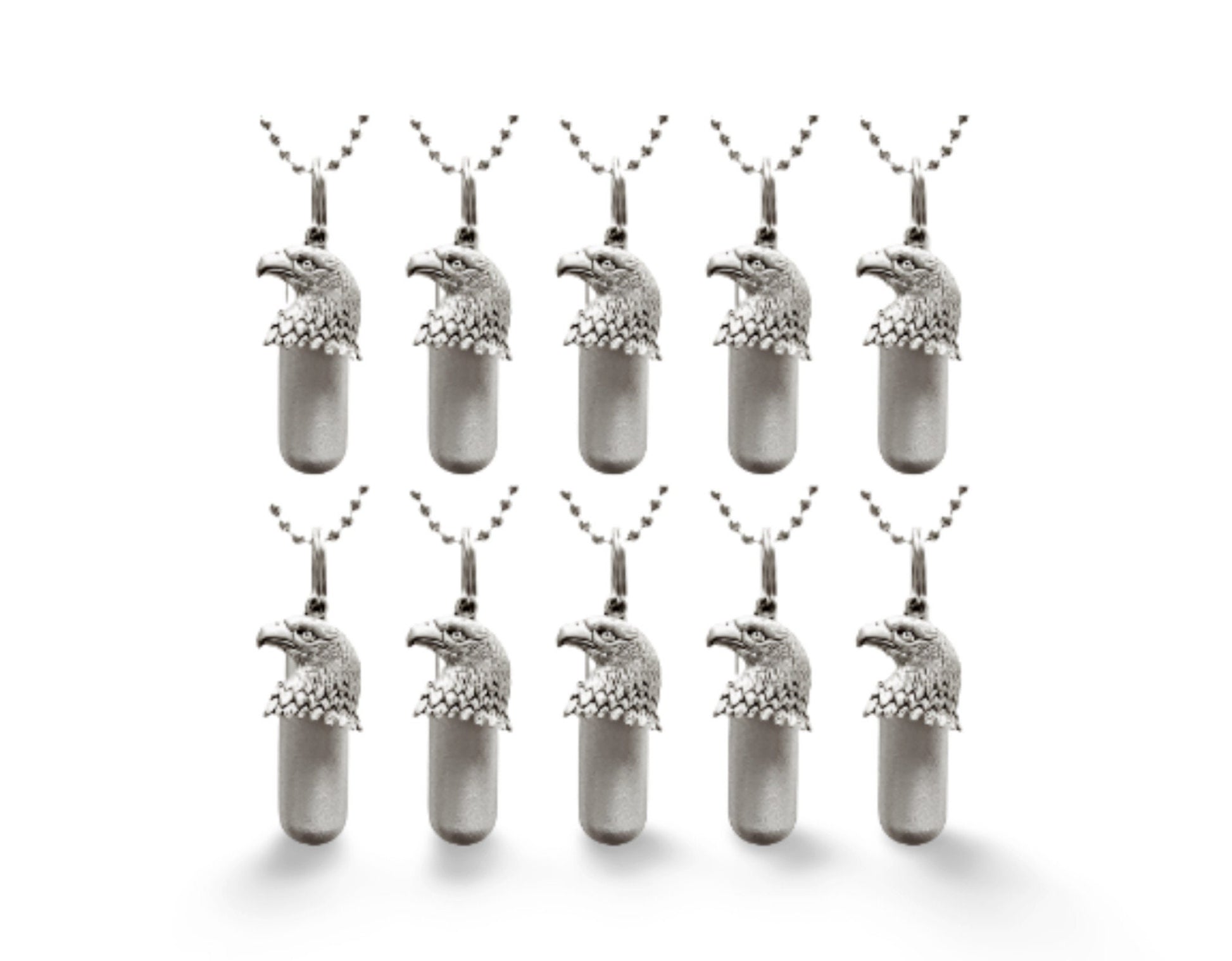 Set of TEN Brushed Silver Bald Eagle CREMATION URN Necklaces - Urn Jewelry, Ashes Necklace, Urn for Human Ashes, Memorial Jewelry
