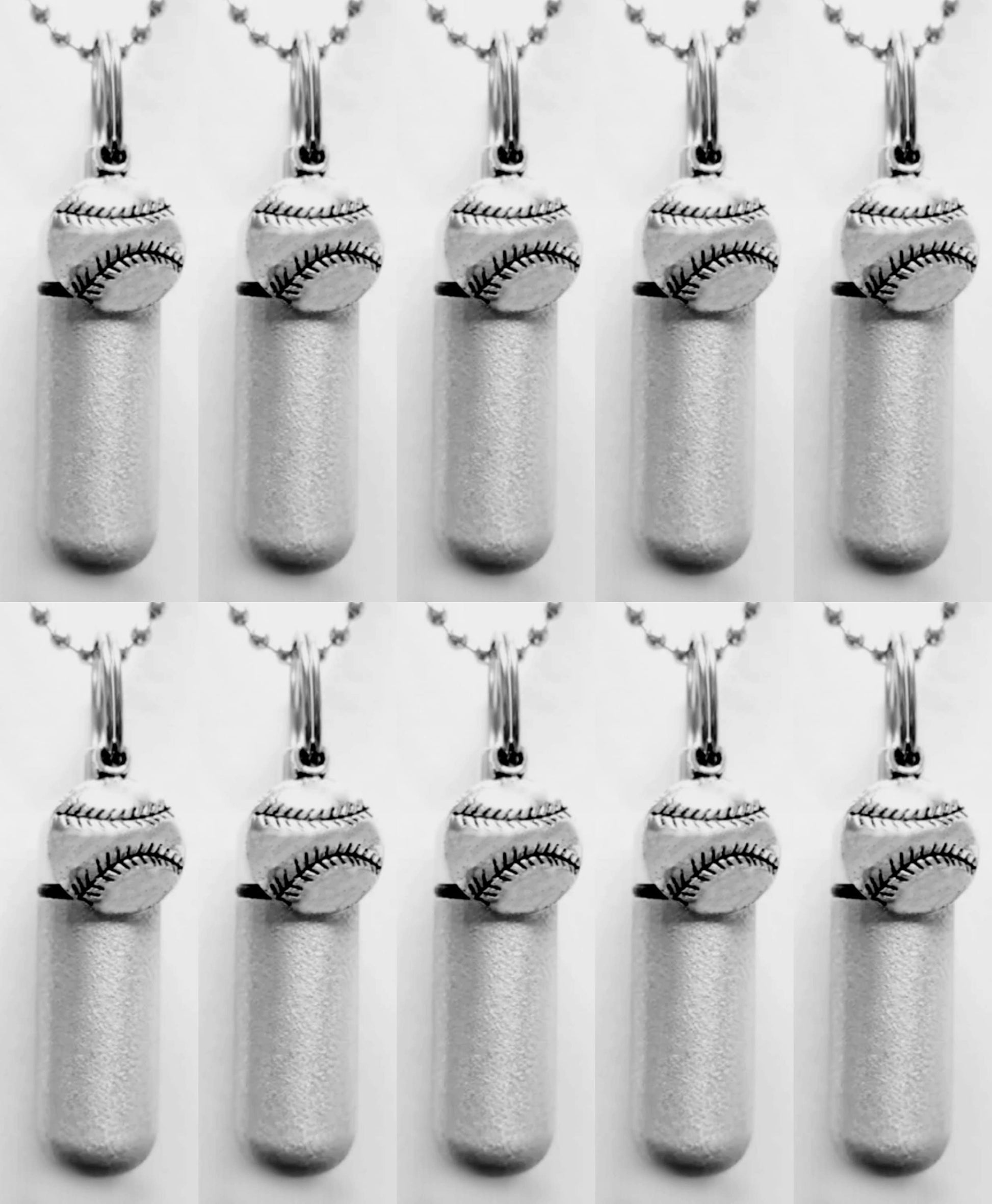 Set of Ten Brushed Silver Baseball CREMATION URN Necklaces - Memorial Urn, Mourning Keepsake, Ashes Necklace, Child Urn, Personalized Urn