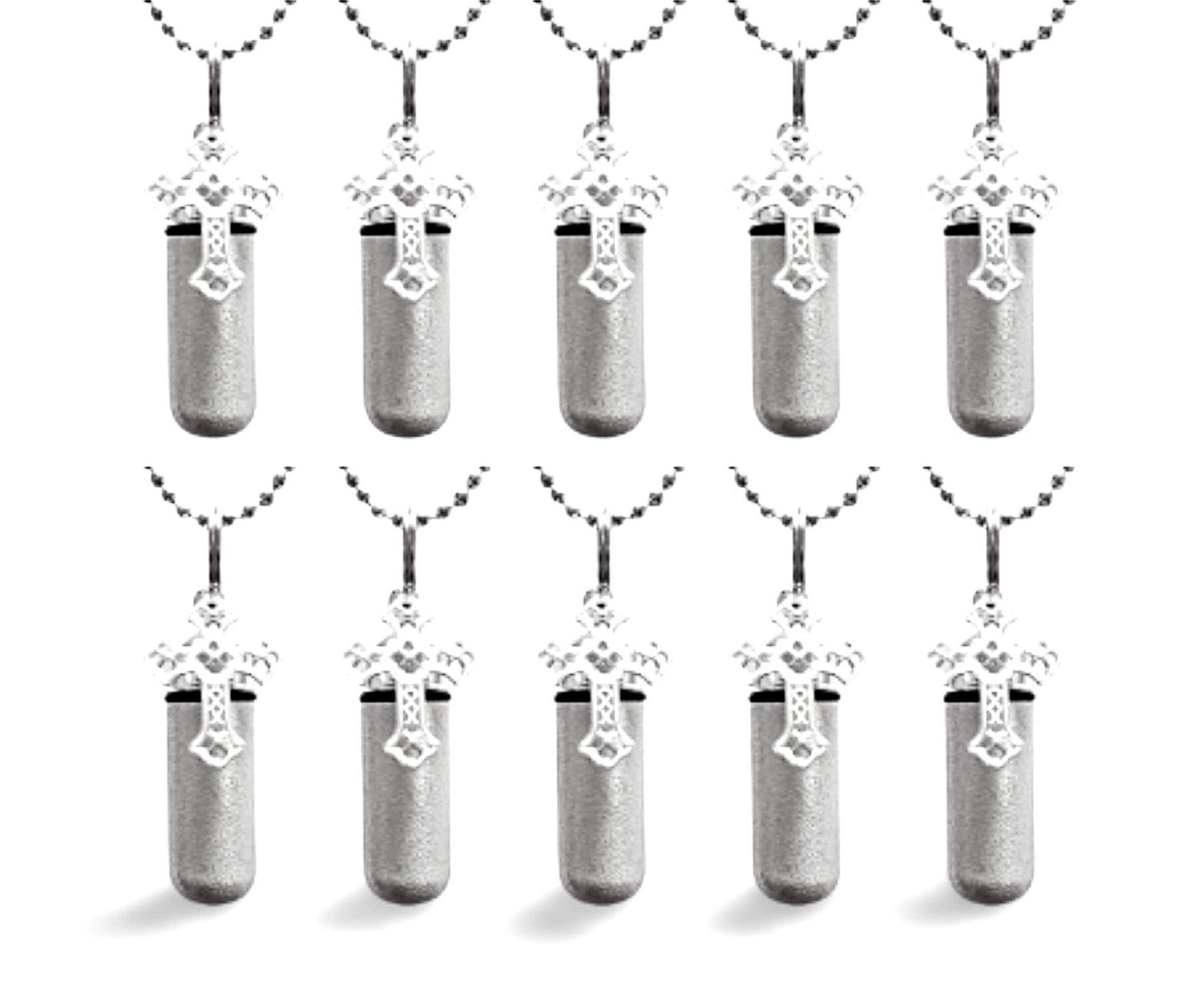 Set of TEN Brushed Silver Lace Cross CREMATION URN Necklaces w/Laser Engraved Hearts - Ashes Necklace, Memorial Jewelry, Urn For Human Ashes