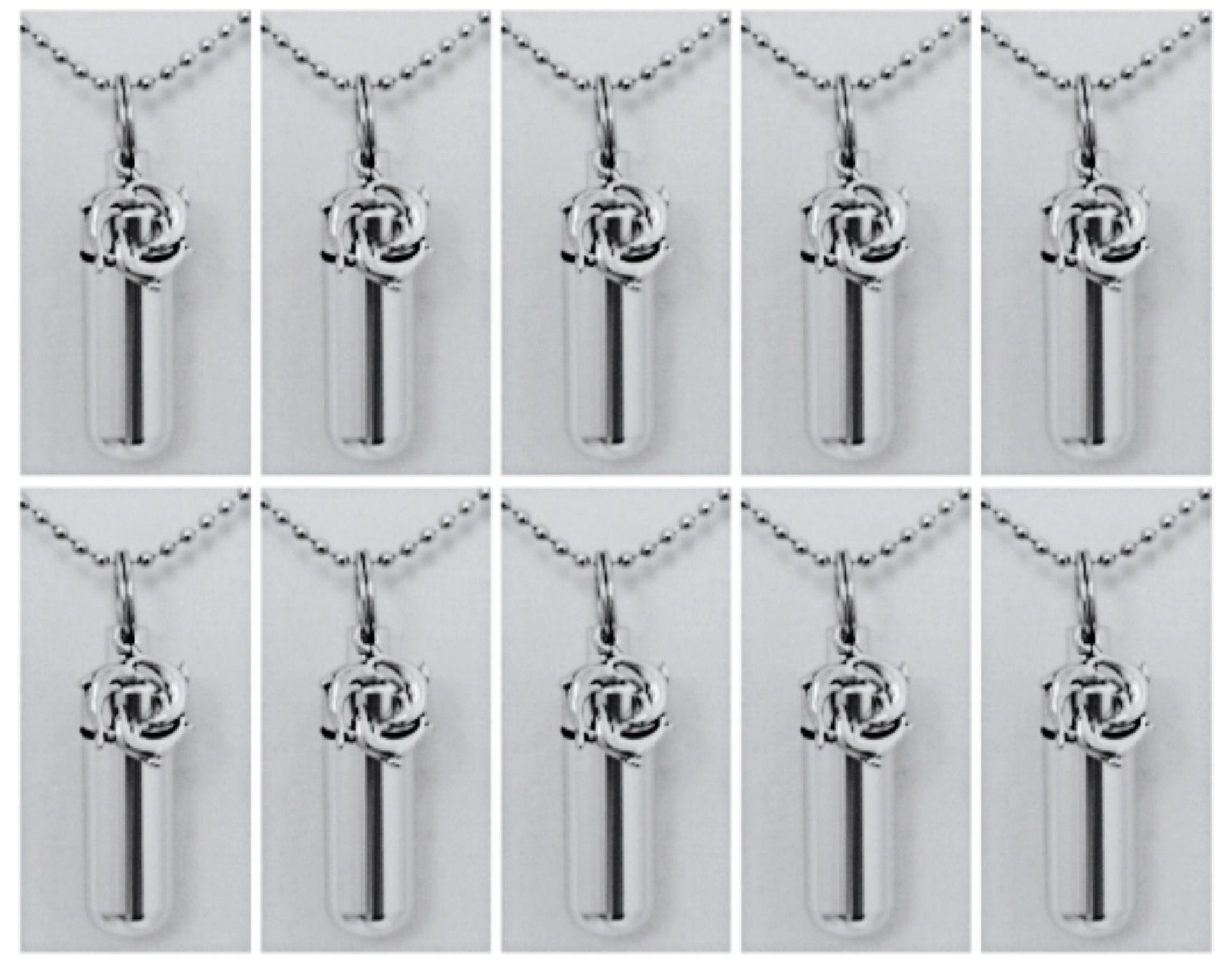 Family Set of TEN "Circle Of Dolphins" Cremation Urn Keepsakes - Includes Ten Velvet Pouches, Ten 24" Ball-Chain Necklaces & Fill Kit