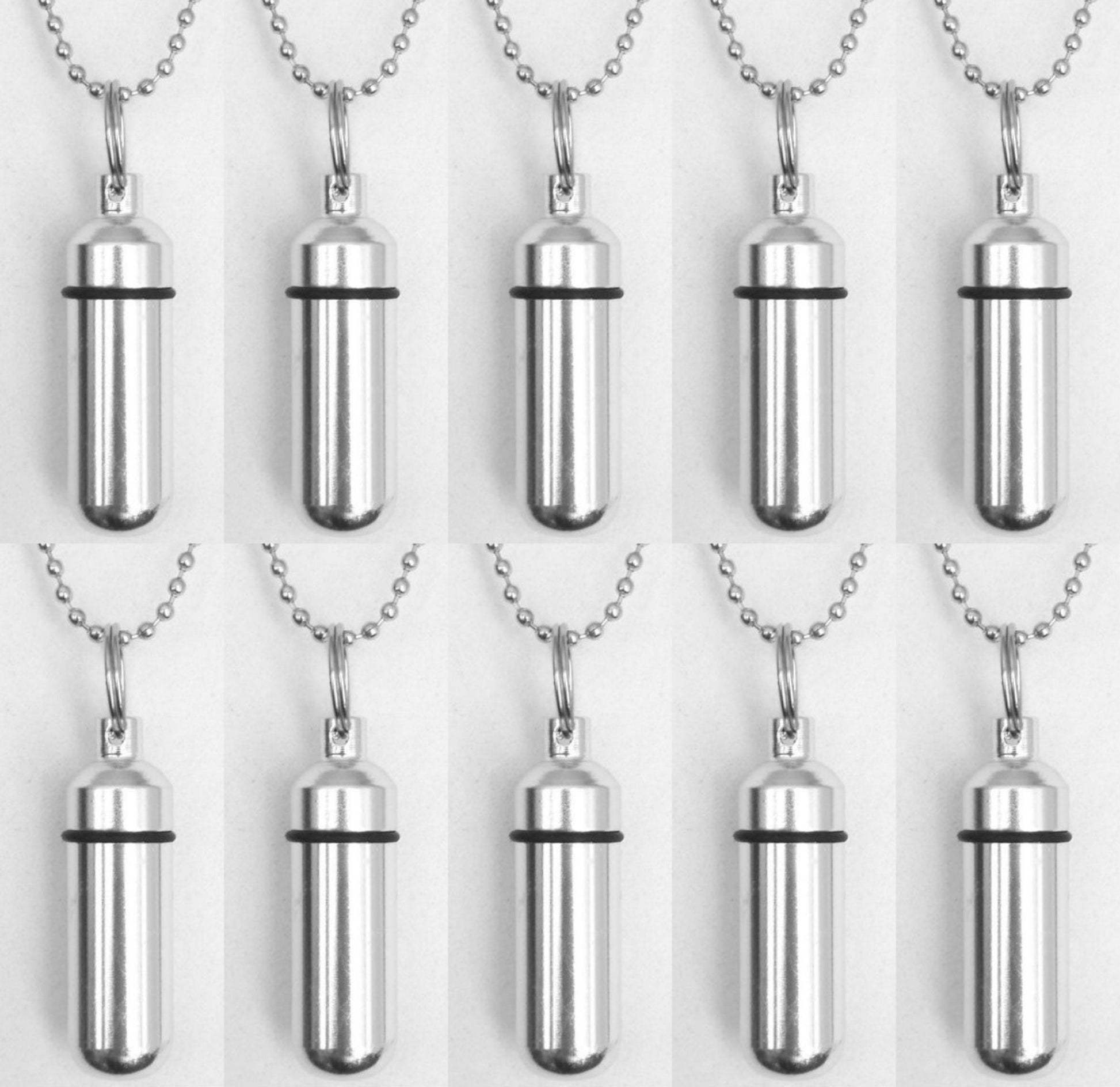 Set of TEN (10) Classic Silver Cremation Urn / container Keychain/Keepsakes - with 10 Velvet Pouches, Ten 24" steel ball chains & 2 Fill Kits