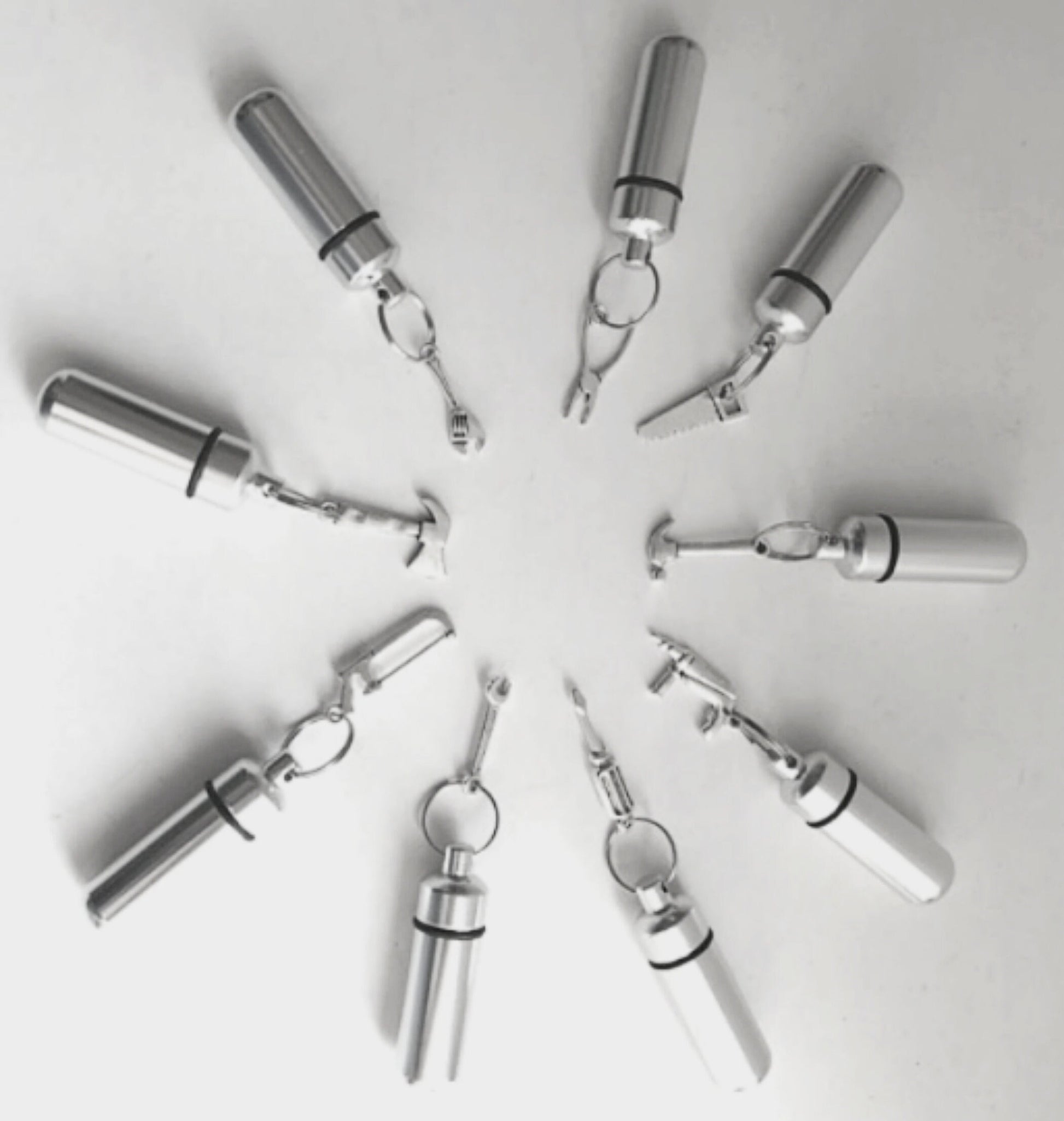 Lovely Tool Assortment of TEN Cremation Urns for Contractor, Carpenter, Plumber, Builder, etc. POLISHED SILVER FINISH Includes 10 Individual Velvet Pouches, 10 Steel 24" Ball Chain Necklaces, and Fill Kit