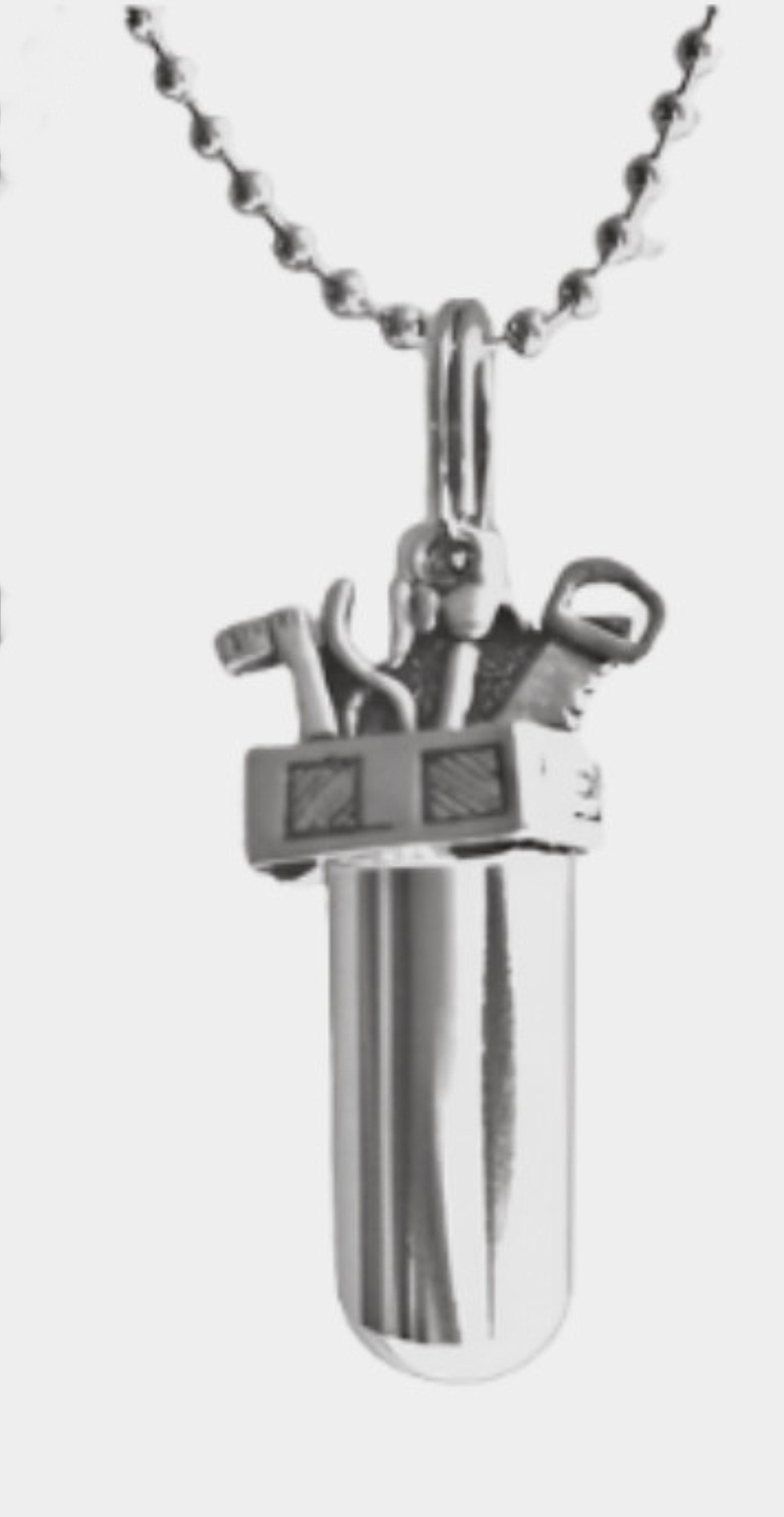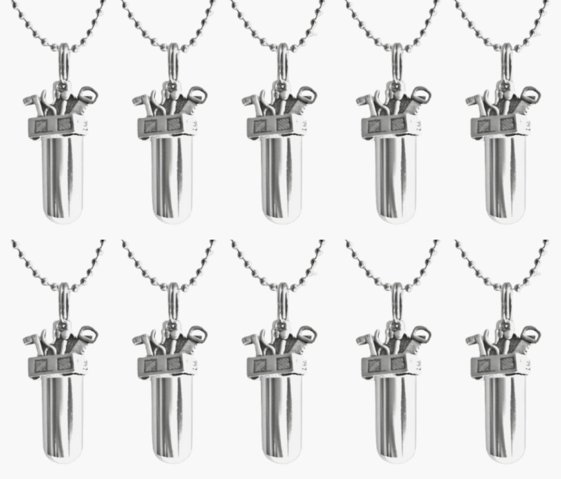 Set of Ten CREMATION TOOLBOX Urn Necklaces for Contractor/Mechanic/Handyman (with 10 Tool Box Charms) Memorial Jewelry, Urn For Human Ashes
