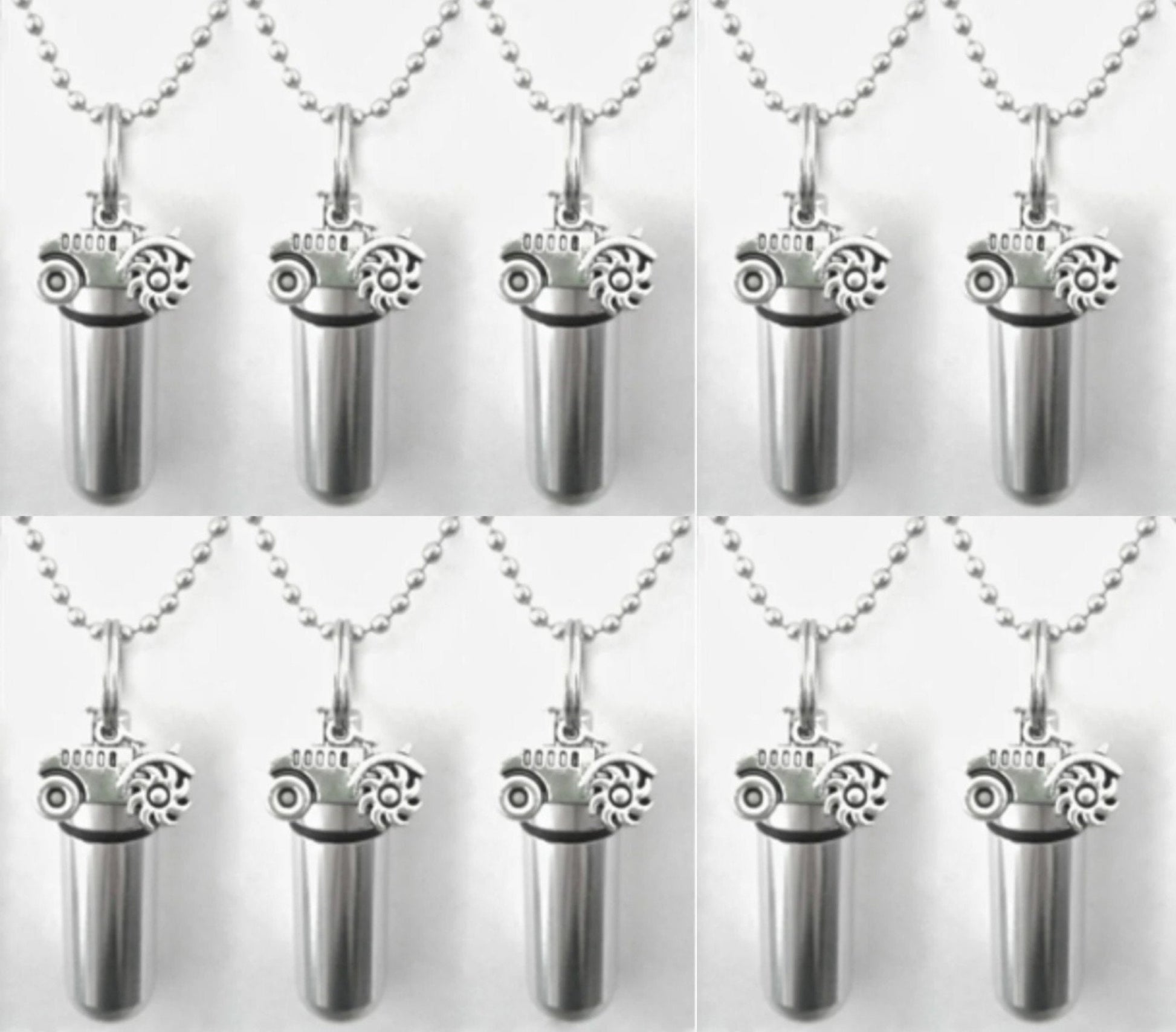 Set of TEN Cremation Urn Necklaces with Farm Tractors - Mourning Jewelry, Urn For Human Ashes, Urn Necklace, Ashes Jewelry, Personalized Urn