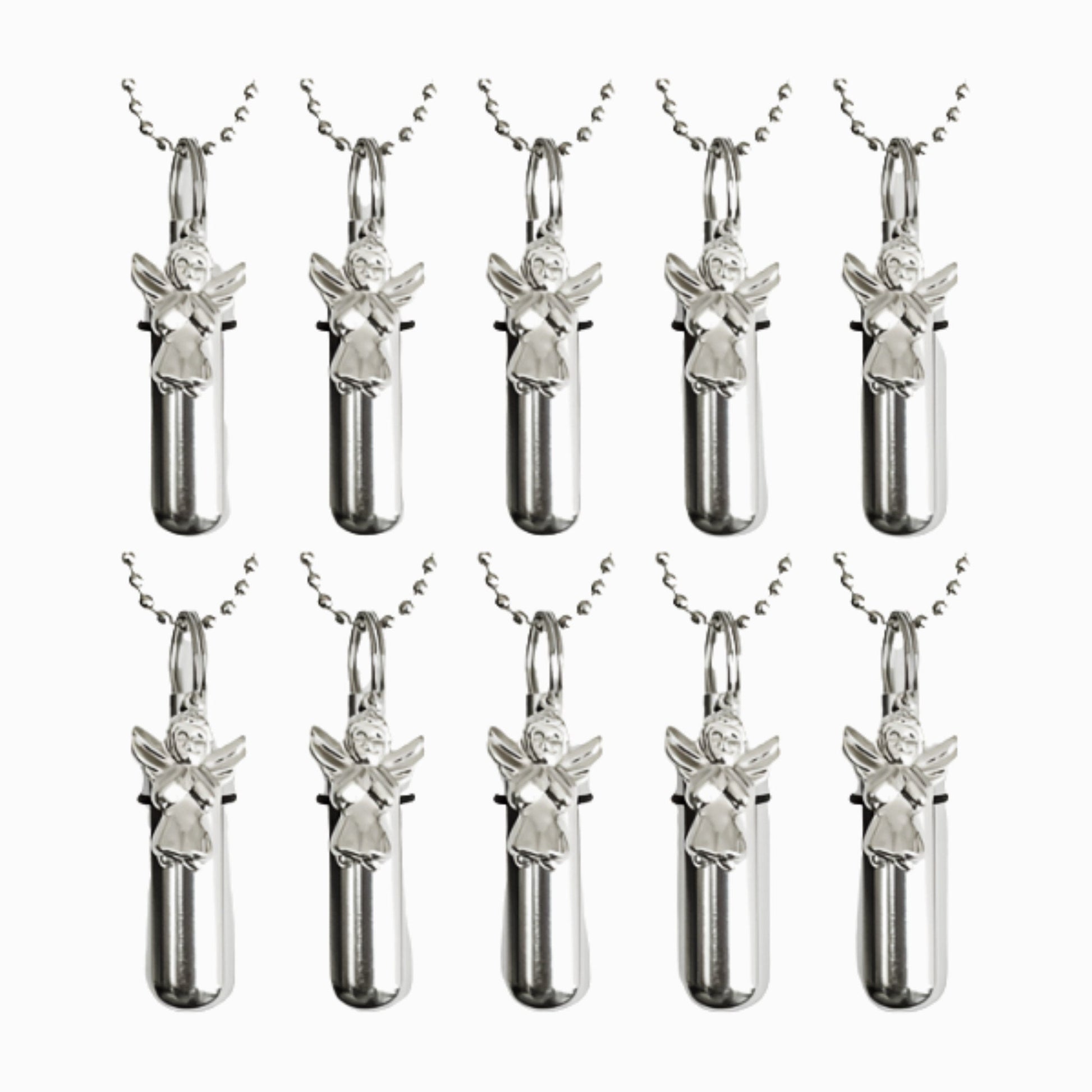 Set of TEN CREMATION URN Necklaces with Silver Plated Praying Angels - Ashes Necklace, Memorial Jewelry, Mourning Jewelry, Urn Keepsake