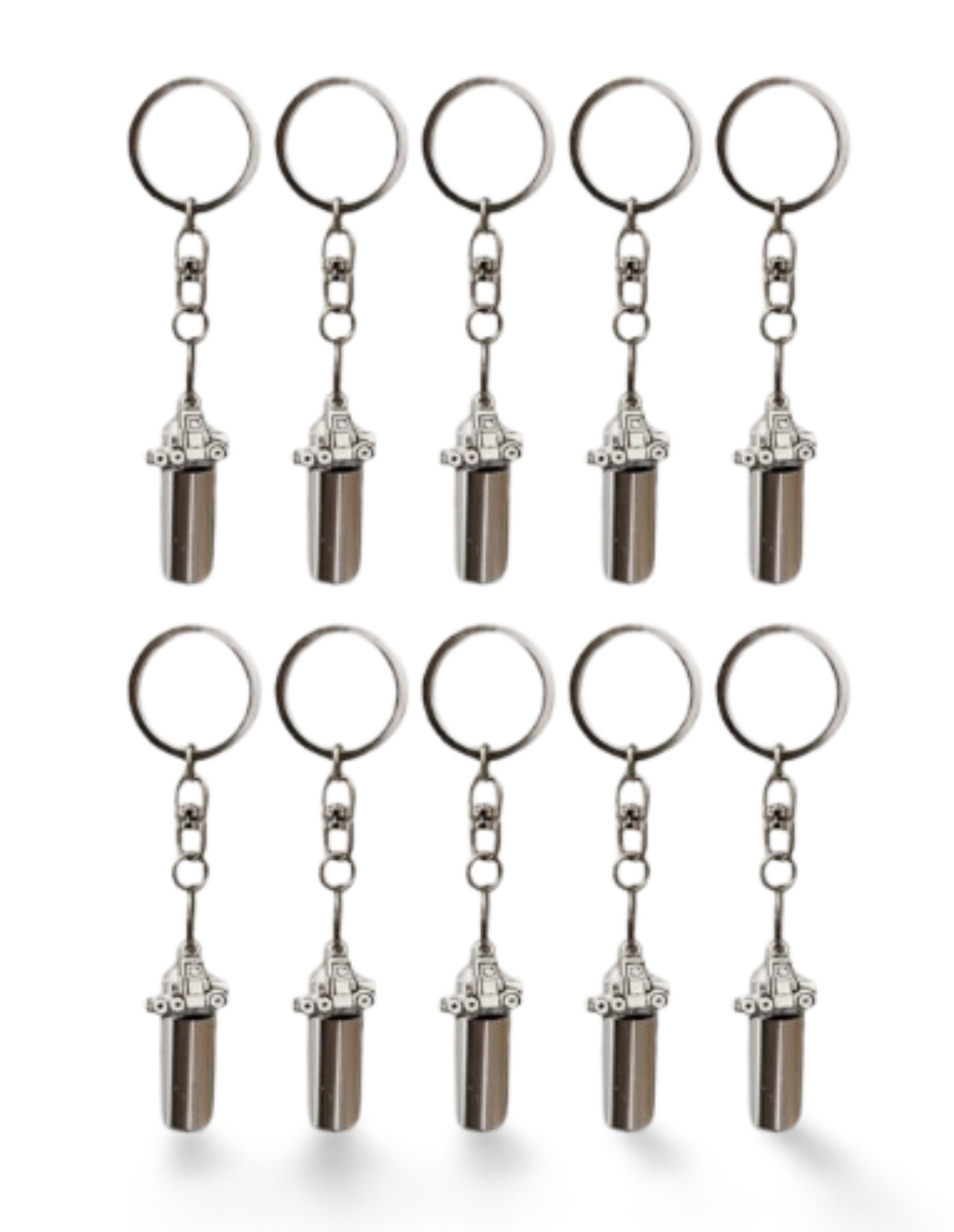Set of TEN Cremation Urns on Swivel Steel Keychains with 18-Wheeler / Semi-Trucks - Memorial Jewelry, Cremation Keepsake, Personalized Urn