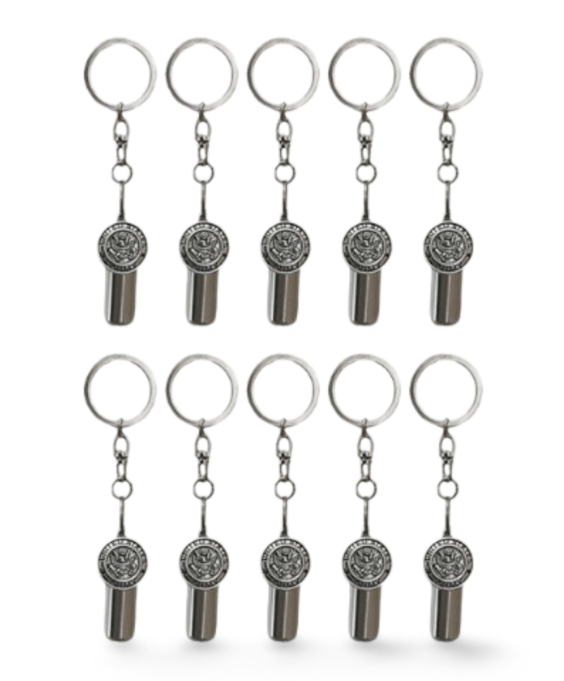 Set of TEN Cremation Urns on Swivel Steel Keychains with ARMY MEDALLION - Memorial Jewelry, Cremation Keepsake, Personalized Urn