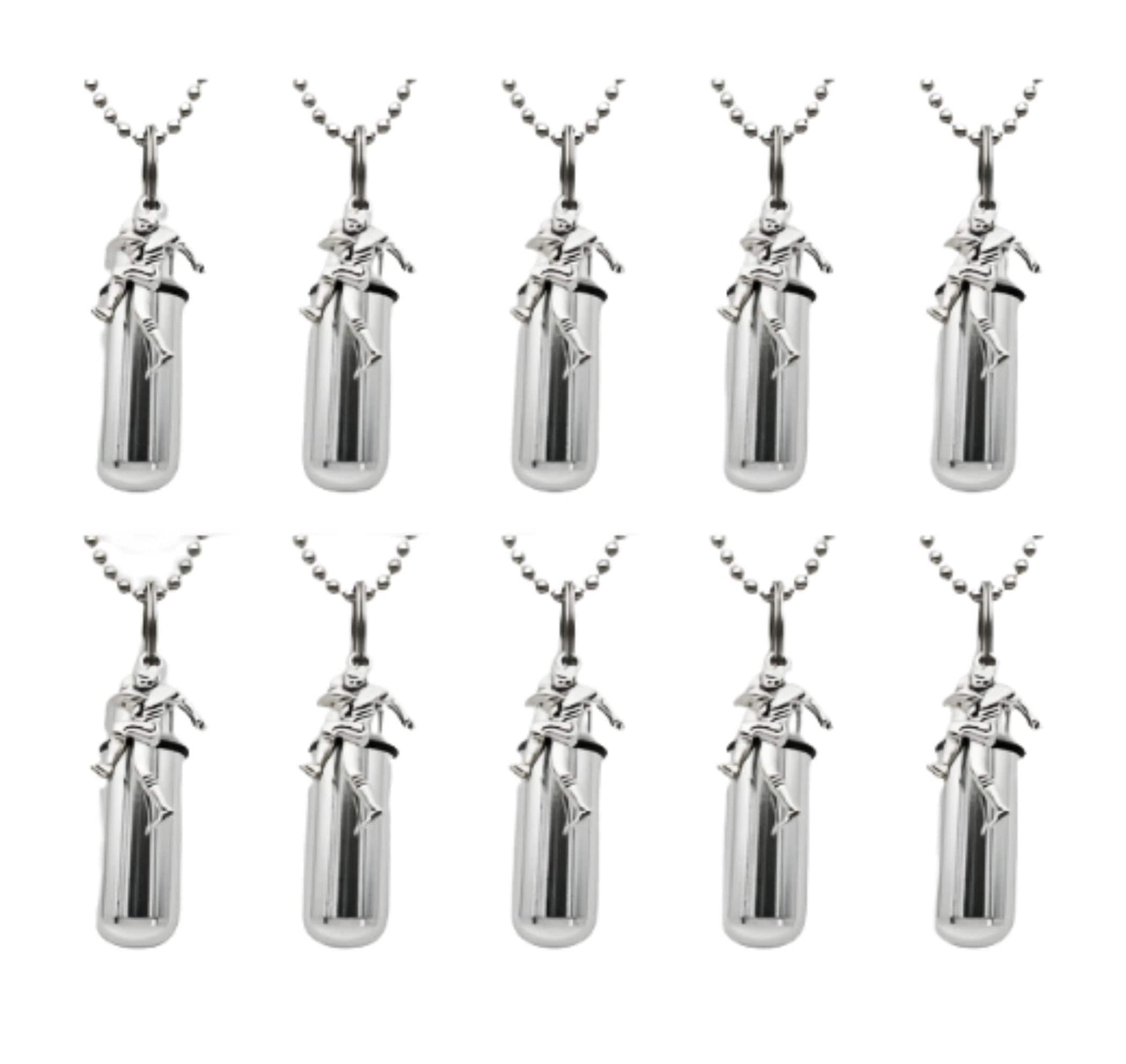 Set of TEN Football Player CREMATION URNS on 24" Steel Ball-Chain Necklaces - Memorial Jewelry, Urn Pendant, Urn For Human Ashes