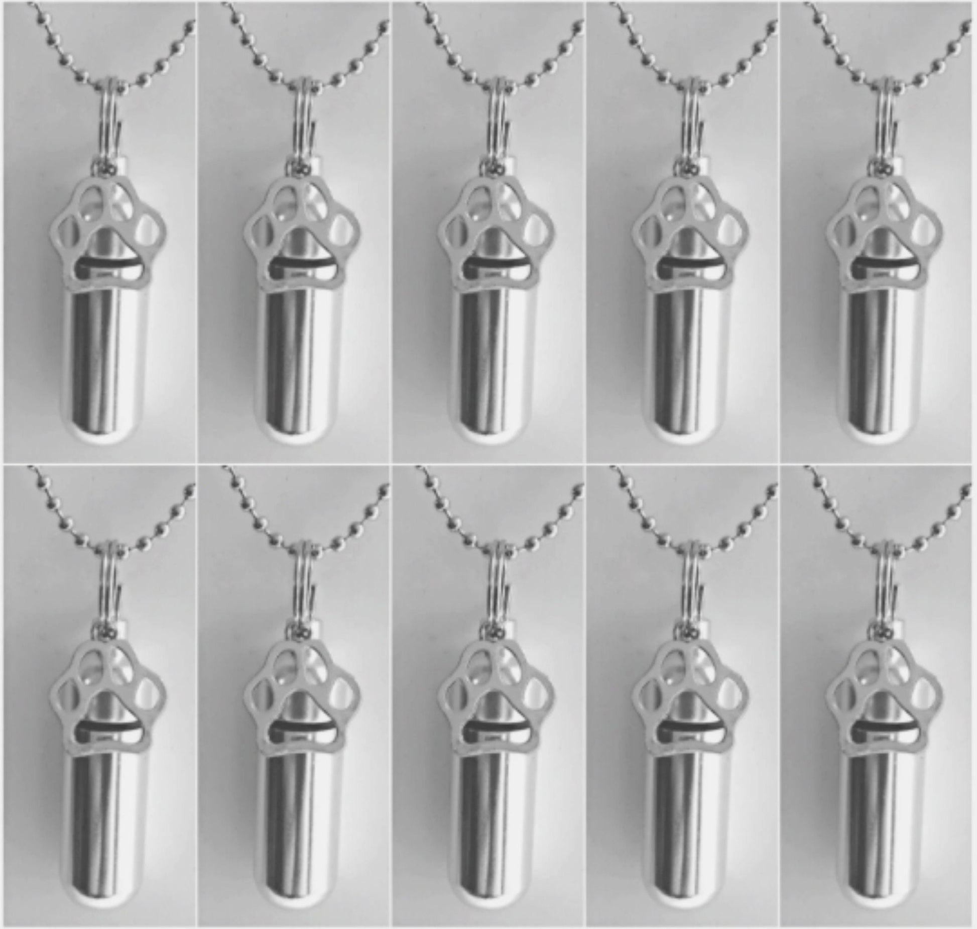 Set of TEN Pet Cremation Necklaces with Silver Dog/Cat Paws, Urn Necklace, Ashes Jewelry, Pet Memorial, Mourning Jewelry, Pet Ashes, Pet Urn