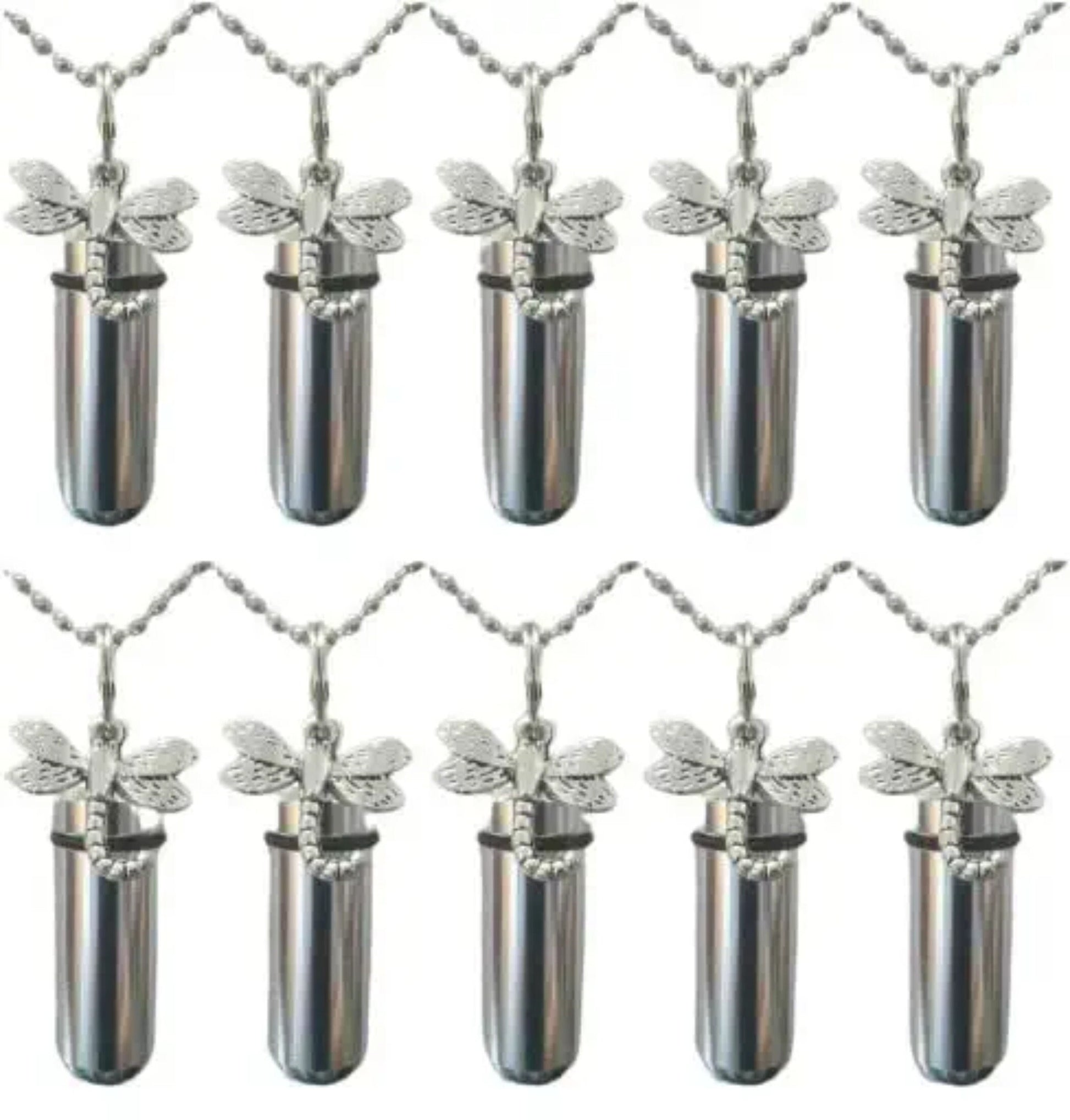 Set of TEN Polished Silver CREMATION URN Necklaces w/Silver Dragonfly - Ashes Necklace, Urn Keepsake, Mourning Jewelry, Personalized Urns
